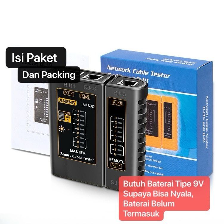 AK-03 Alat Penguji Lan Tester Ethernet RJ45 RJ11 Tester Kabel LAN & Kabel Telepon