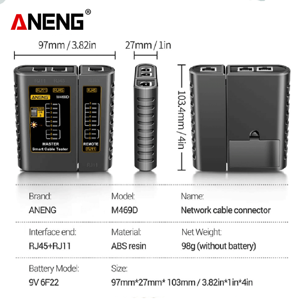 Aneng M469D Tester Lan Jaringan Internet Telpon Network RJ45 RJ11