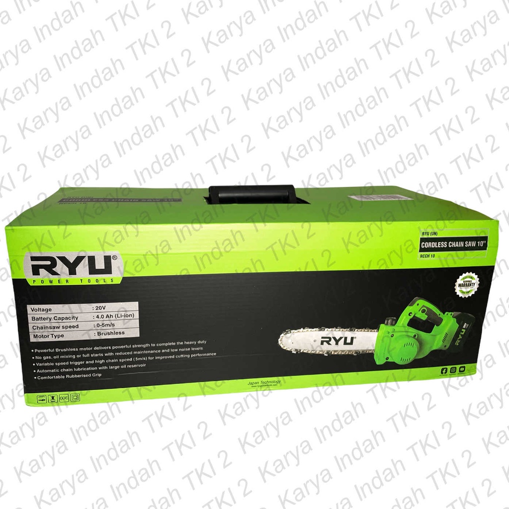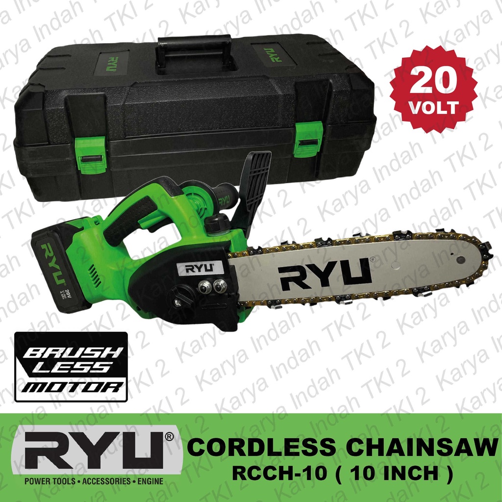 BRUSHLESS Cordless Chainsaw 10" RYU RCCH10 Mesin Gergaji Kayu Chain Saw 20 Volt P0T0NG Pohon 20V