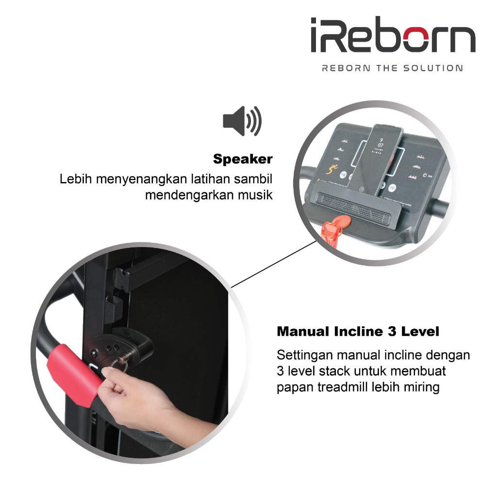 TREADMILL ELEKTRIK IREBORN VENIO ALAT FITNESS HOME GYM RUMAHAN LARI DITEMPAT LIPAT MURAH LOW WATT TANPA DP BERGARANSI