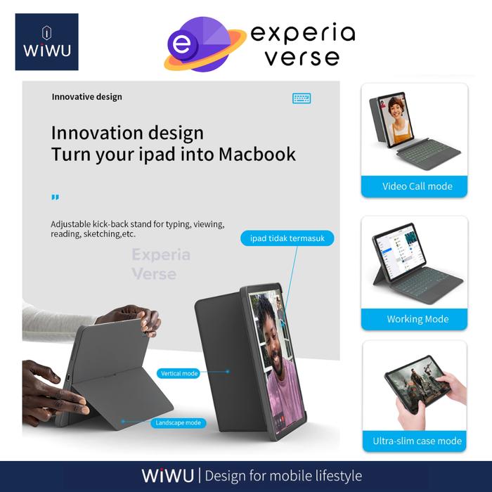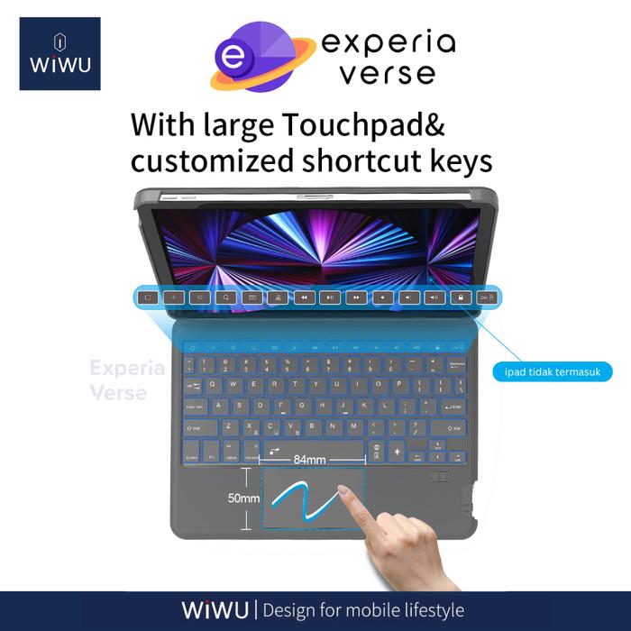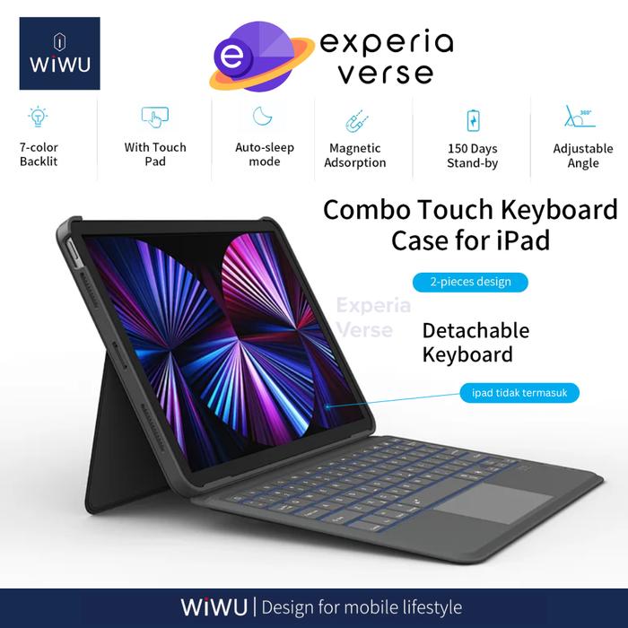 WIWU COMBO TOUCH DETACHABLE KEYBOARD CASE WITH TRACKPAD UNTUK IPAD 7TH/8TH/9TH GEN, IPAD AIR, IPAD PRO 11" - IPAD 10.2" 7TH(2019)/8TH GEN (2020)/ 9TH GEN(2021)