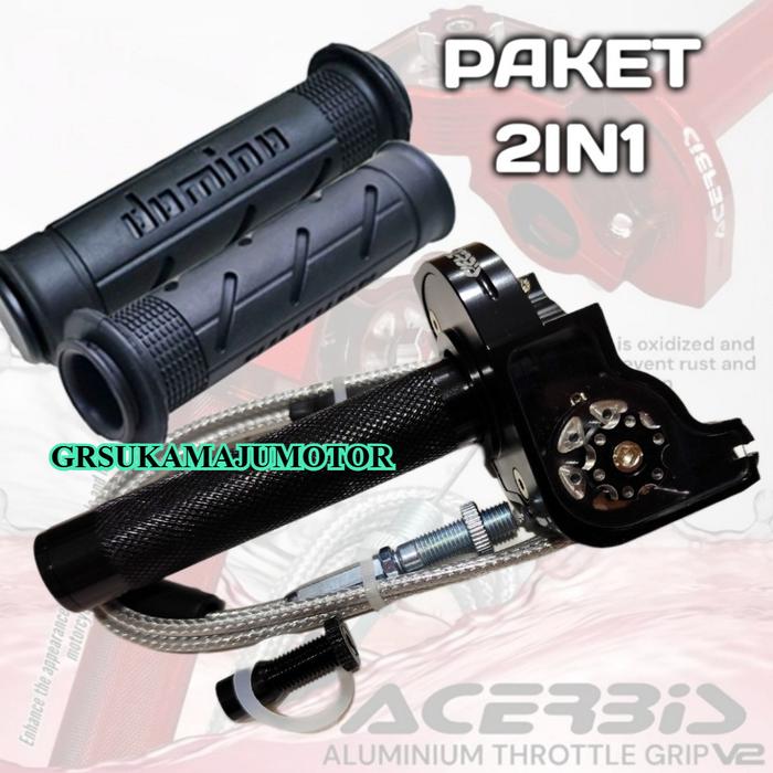 Paket 3In1 Gas Spontan Acerbis + Handgrip Sisik + Jalu Stang Ukir Gas Spontan Kontan Acerbis Full Cnc Plus 1 Kabel Unive