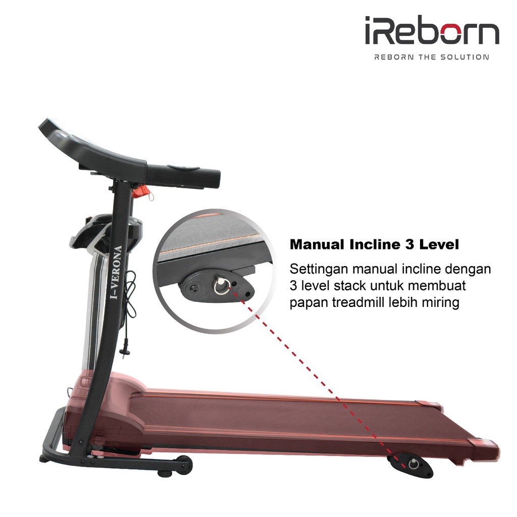 TREADMILL IREBORN I-VERONA ALAT FITNESS HOME GYM RUMAHAN LARI DITEMPAT LIPAT MURAH LOW WATT TANPA DP BERGARANSI