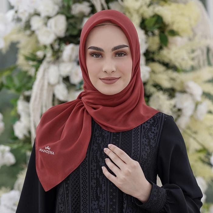 Mandjha Basic Hijab Persegi Polos Voal Premium By Ivan Gunawan Kerudung Polos Square Muslim Segi Empat Polos - Burgundy