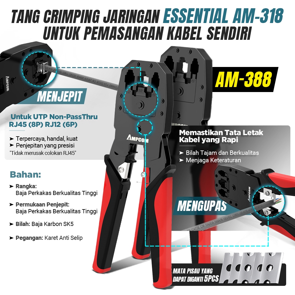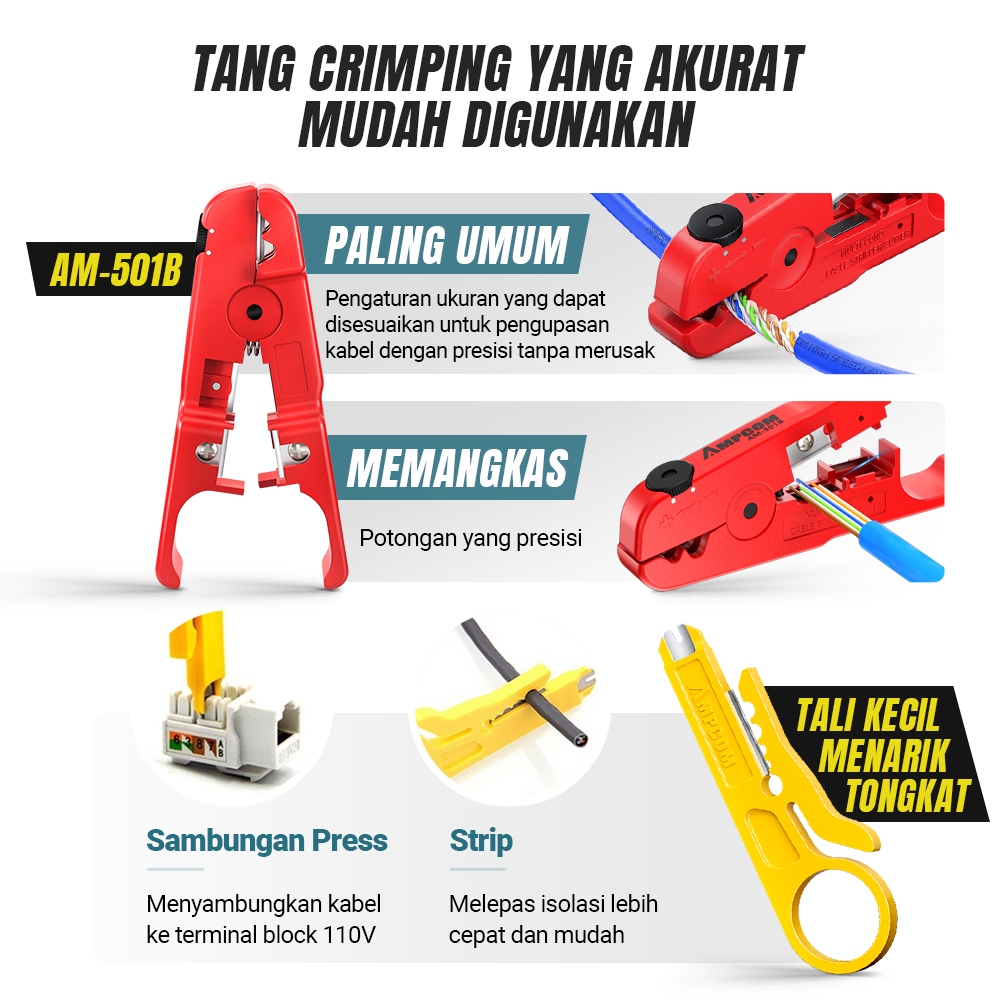 Perangkat Alat Jaringan, AMPCOM 12 in 1 Profesional Portabel Pemeliaan Komputer Ethernet Penguji Kabel LAN Set Pemotong