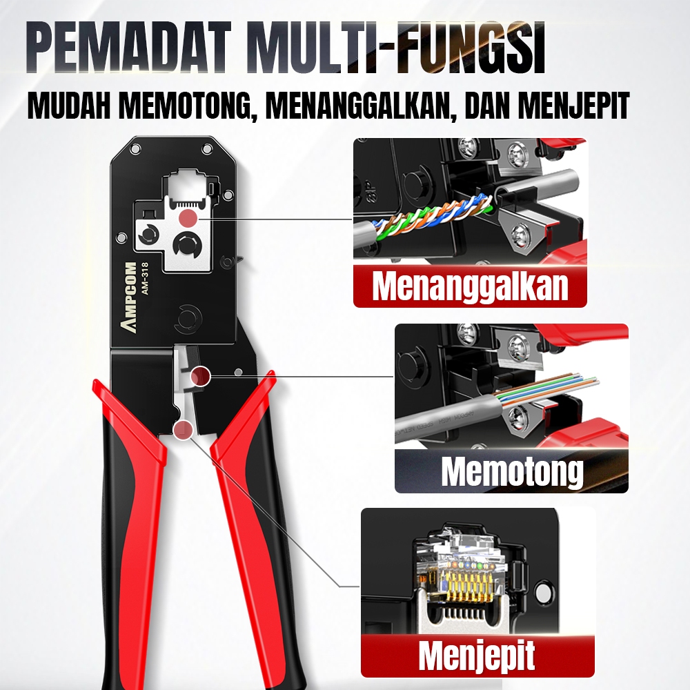 AMPCOM RJ45 Crimping Tool Jaringan Ethernet LAN Kabel Crimper Cutter Stripper Plier 8P RJ45 6P RJ12 RJ11 untuk ular Kone