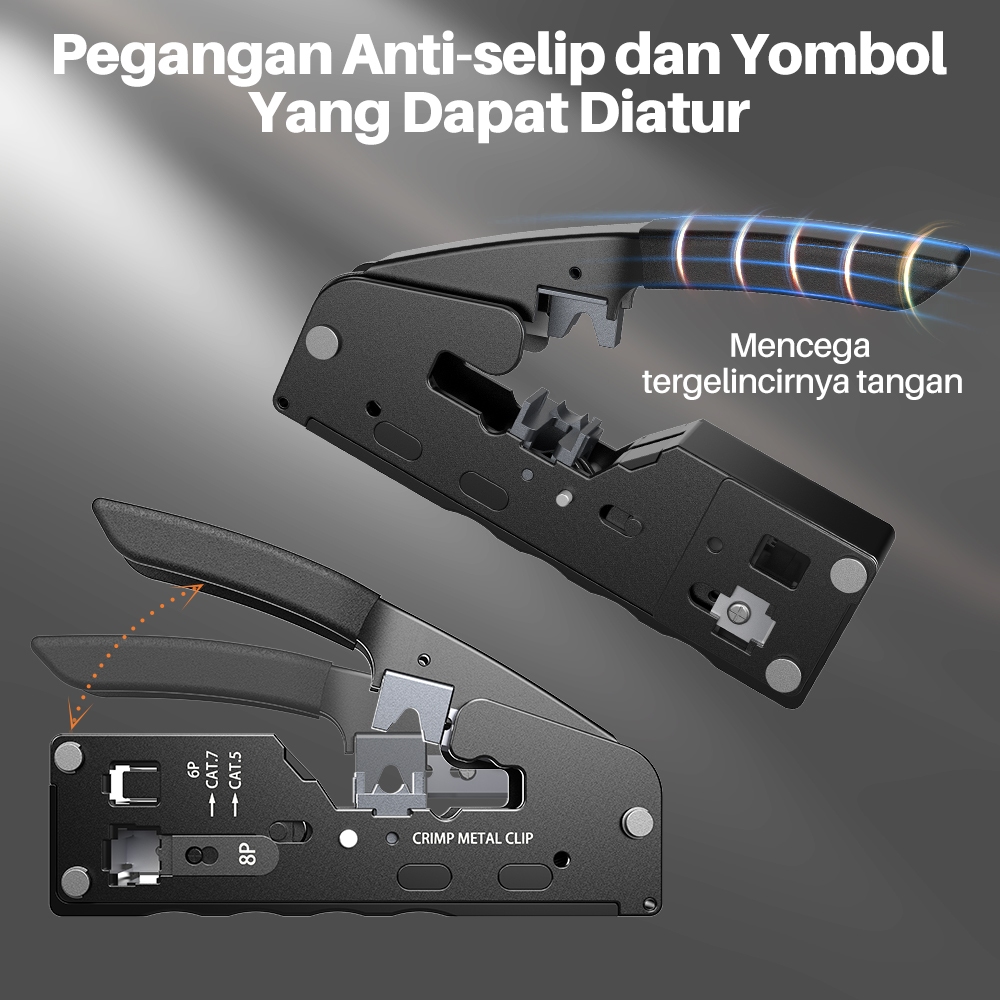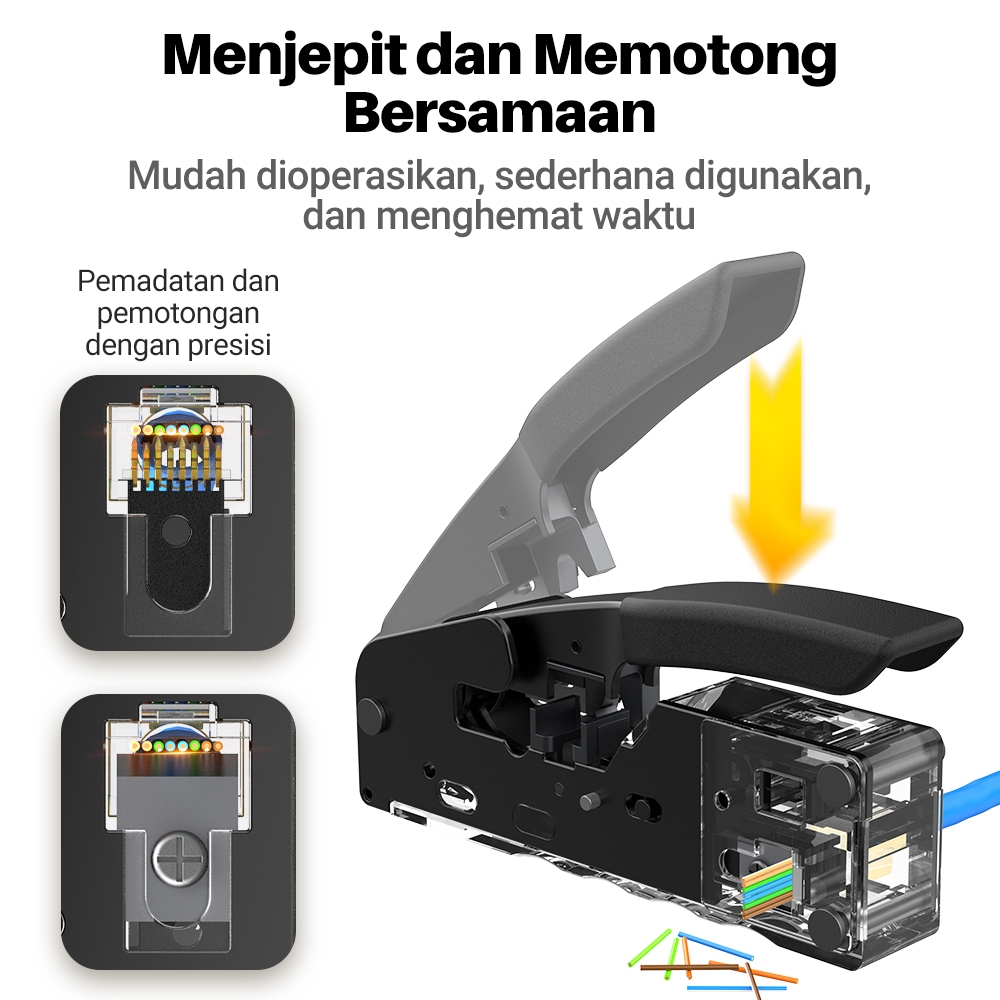 AMPCOM Alat Pemadat CAT7 RJ45 untuk RJ11 RJ45 Pass Through Connector CAT6 CAT5E dengan Pemotong Strip Kabel dan Cutter u