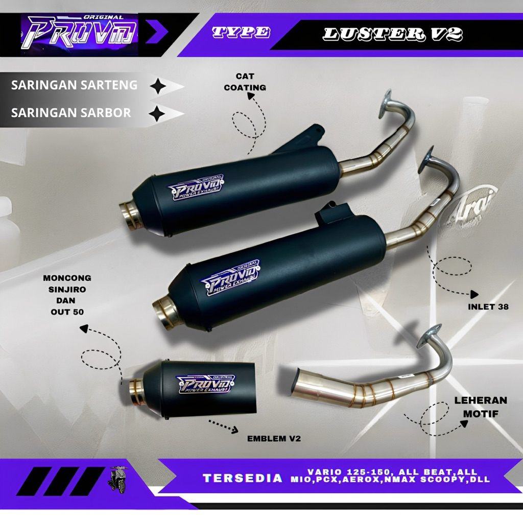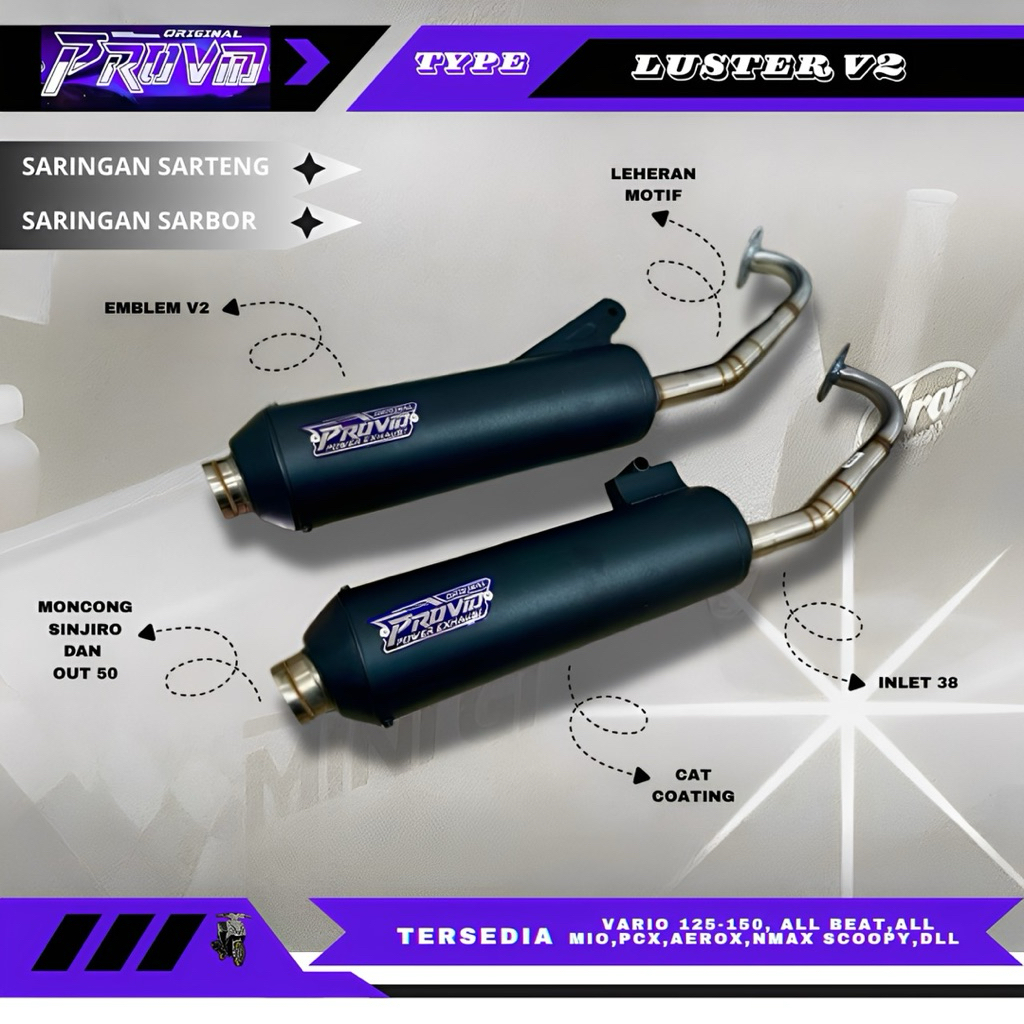 Knalpot Original Provid Power Exhaust Type Luster Inlet 38 Out 50 Untuk Motor Beat Vario Pcx Mio N Max Aerox Dll
