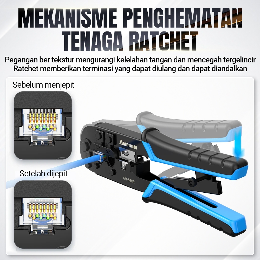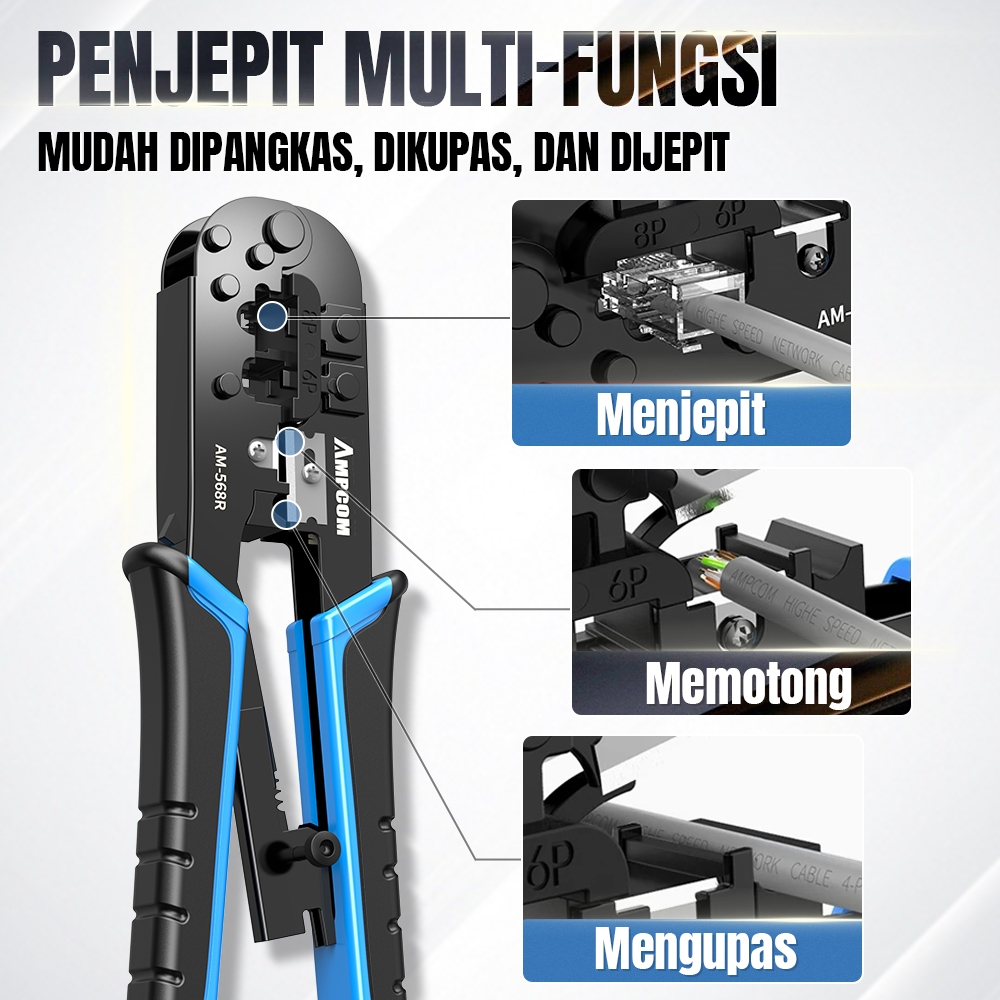 AMPCOM RJ45 Crimper Alat Pemadat RJ11 RJ45 Alat Pemadat Kabel Jaringan LAN Ethernet Pemotong Stripper Pemotong Untuk 6P