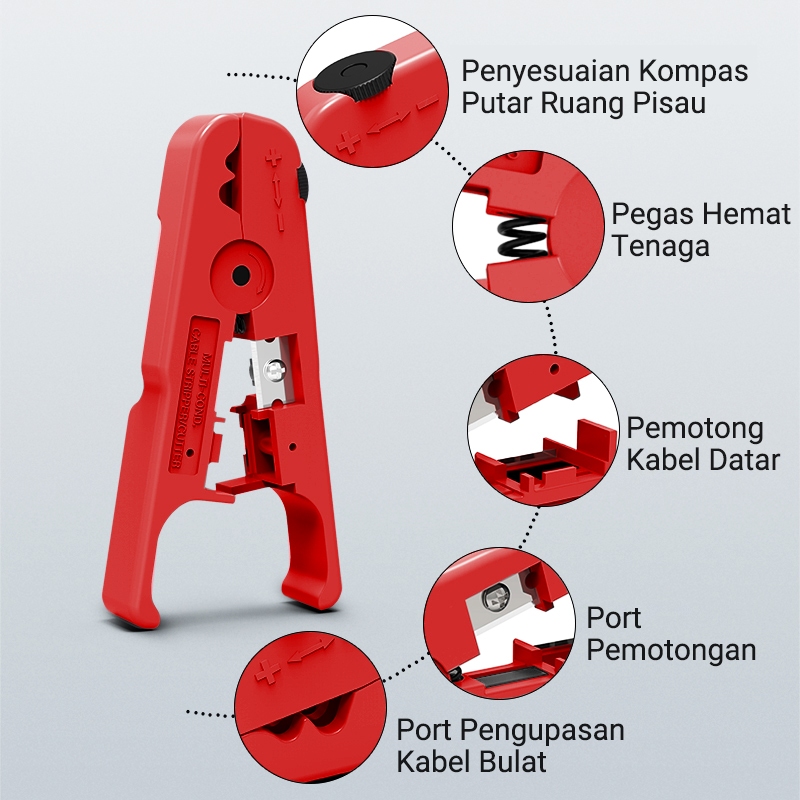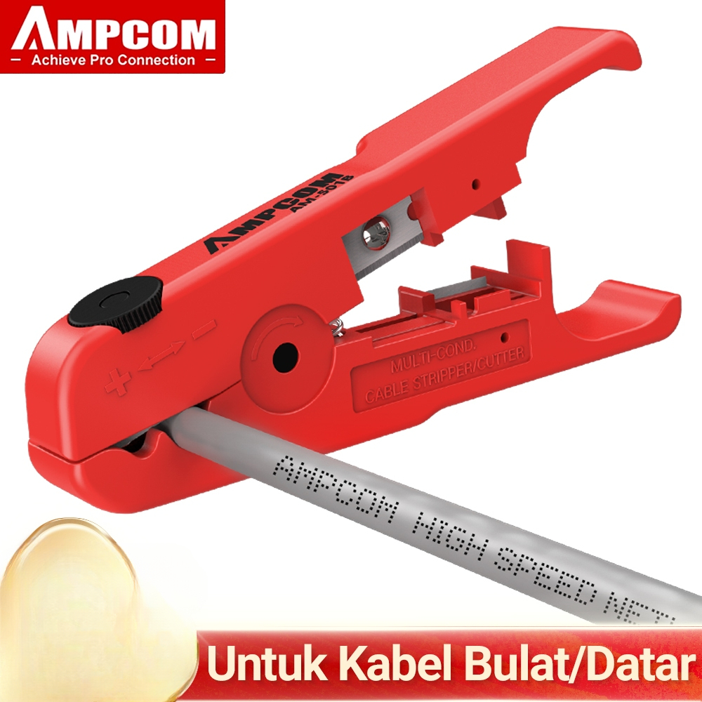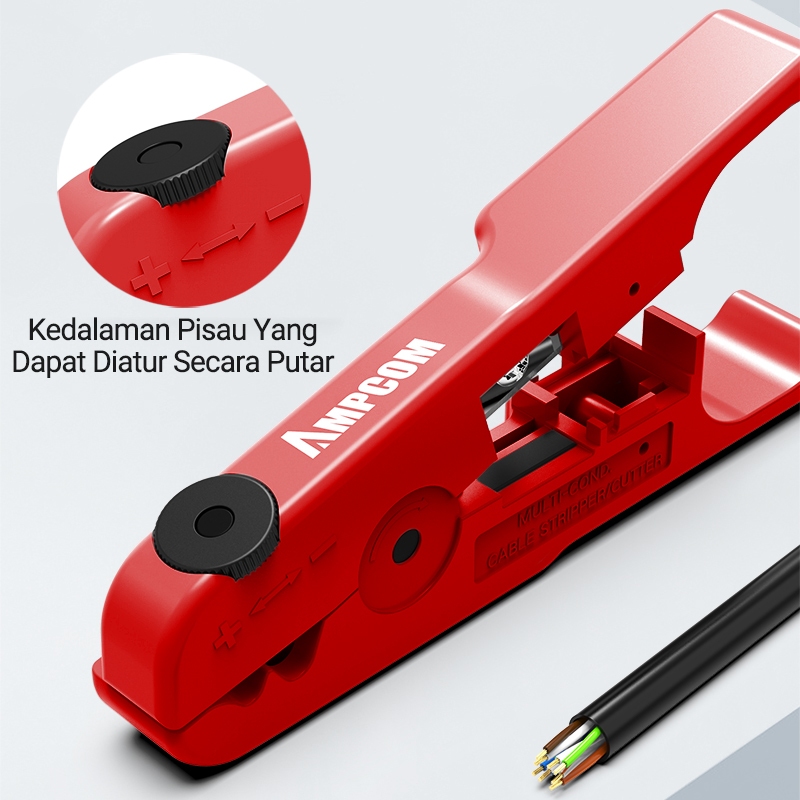 AMPCOM Alat Pemotong dan Pemadat Kabel, Alat Pemotong Kabel Koaksial, Alat Pemotong Kabel Bulat, dan Alat Pemotong serta
