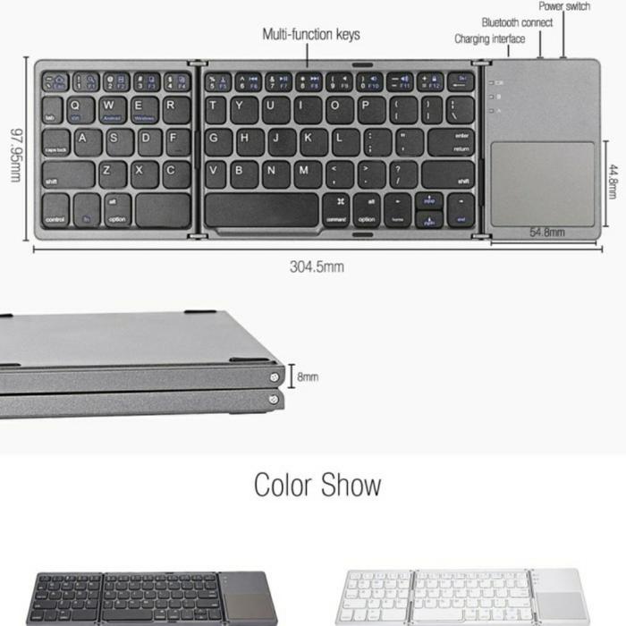 FOLDING KEYBOARD BLUETOOTH WIRELESS TOUCHPAD, KEYBOARD LIPAT B033 - s1lverr
