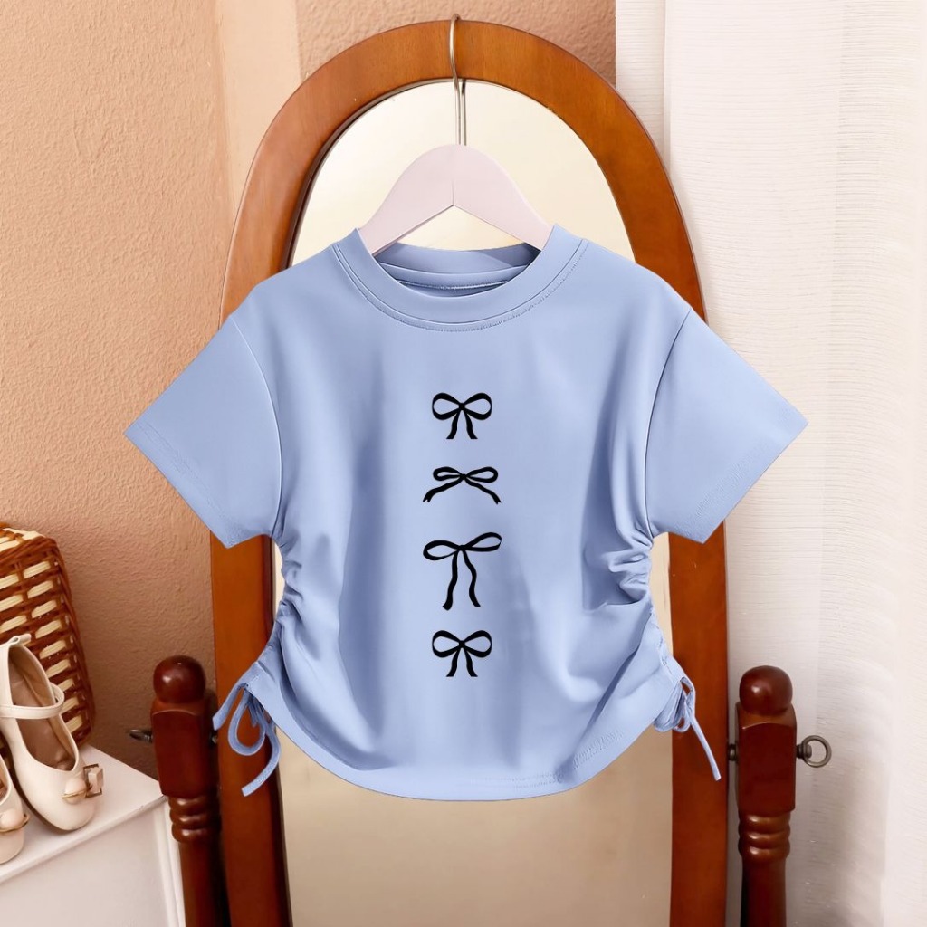 Kaos Anak Cewek Lengan Pendek Fashionable Baju Crop 4 Ribbon Anak Perempuan Tali Serut Usia 1 - 12 Tahun