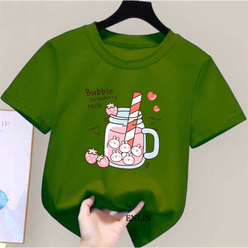 kaos oblong anak perempuan terbaru usia 2-10thn atasan lengan pendek anak cewek motif