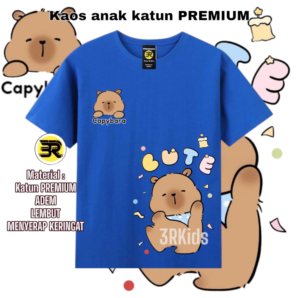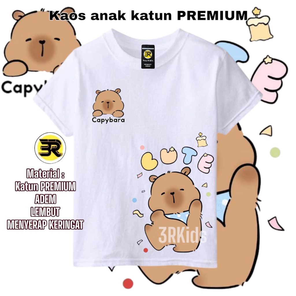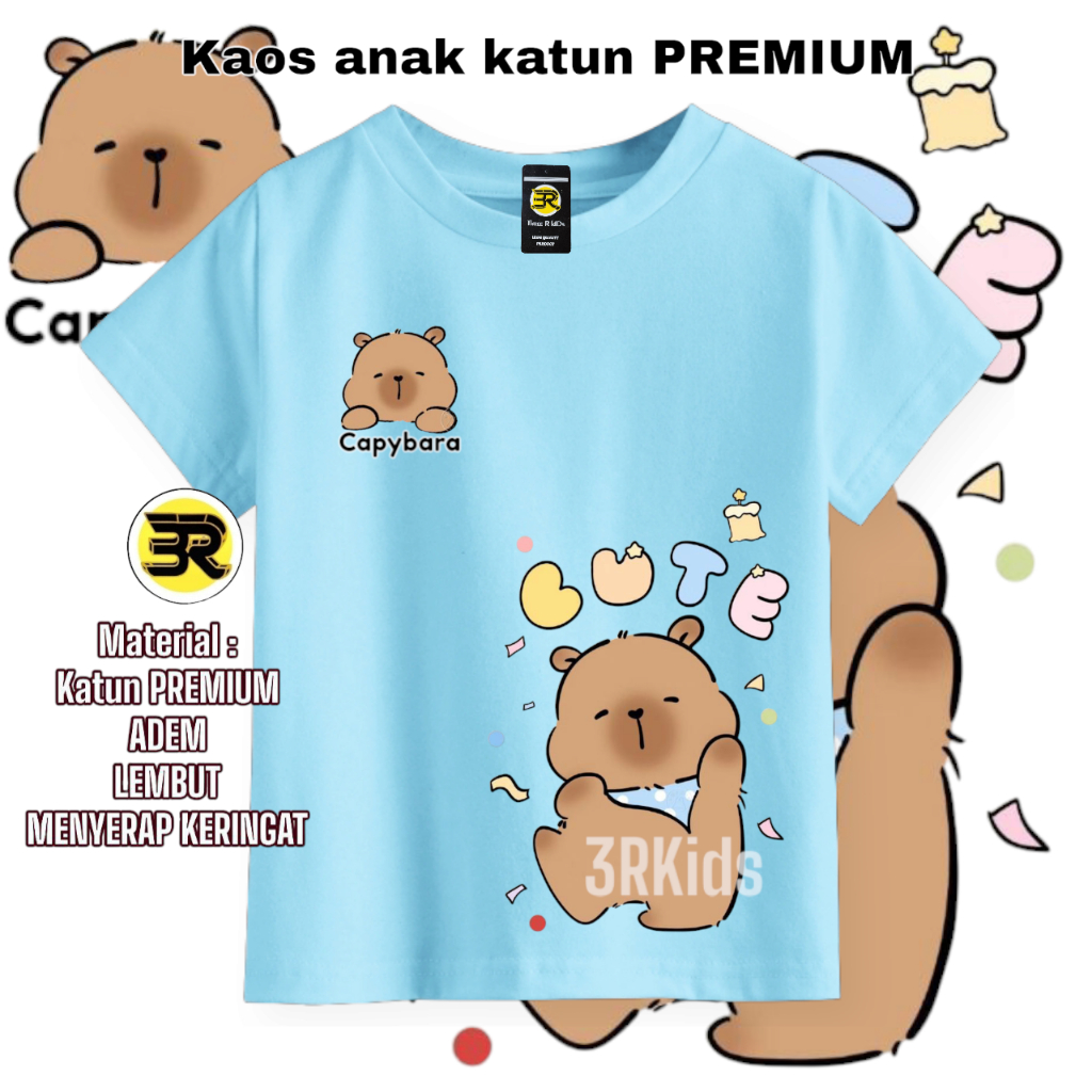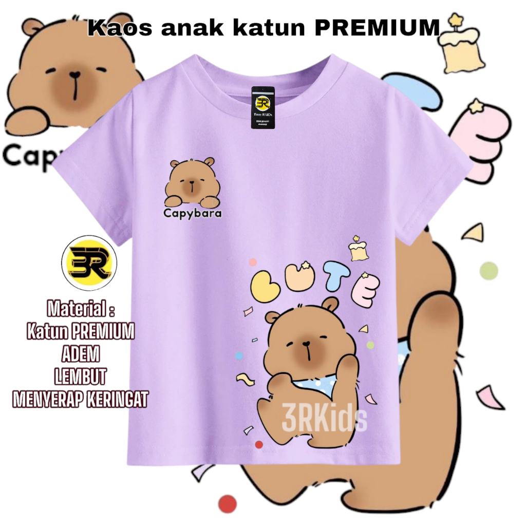 KAOS ANAK CAPYBARA Binatang Hewan Lucu Bahan Katun 100% T-shirt Lengan Pendek Anak Perempuan