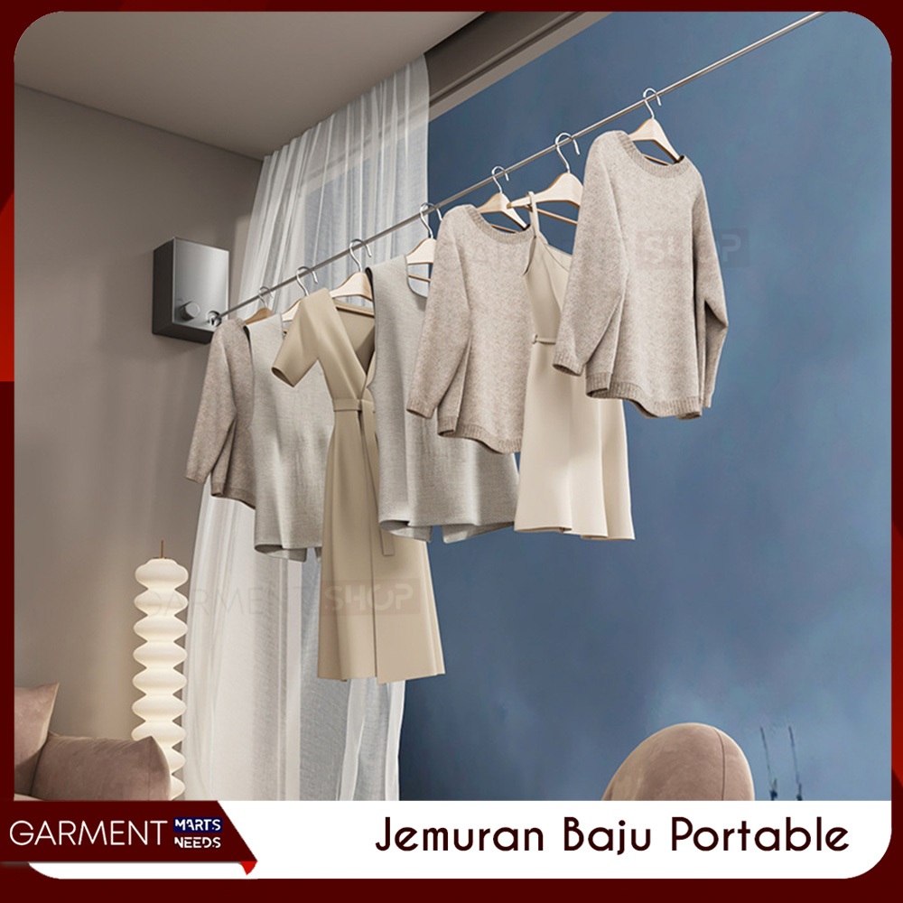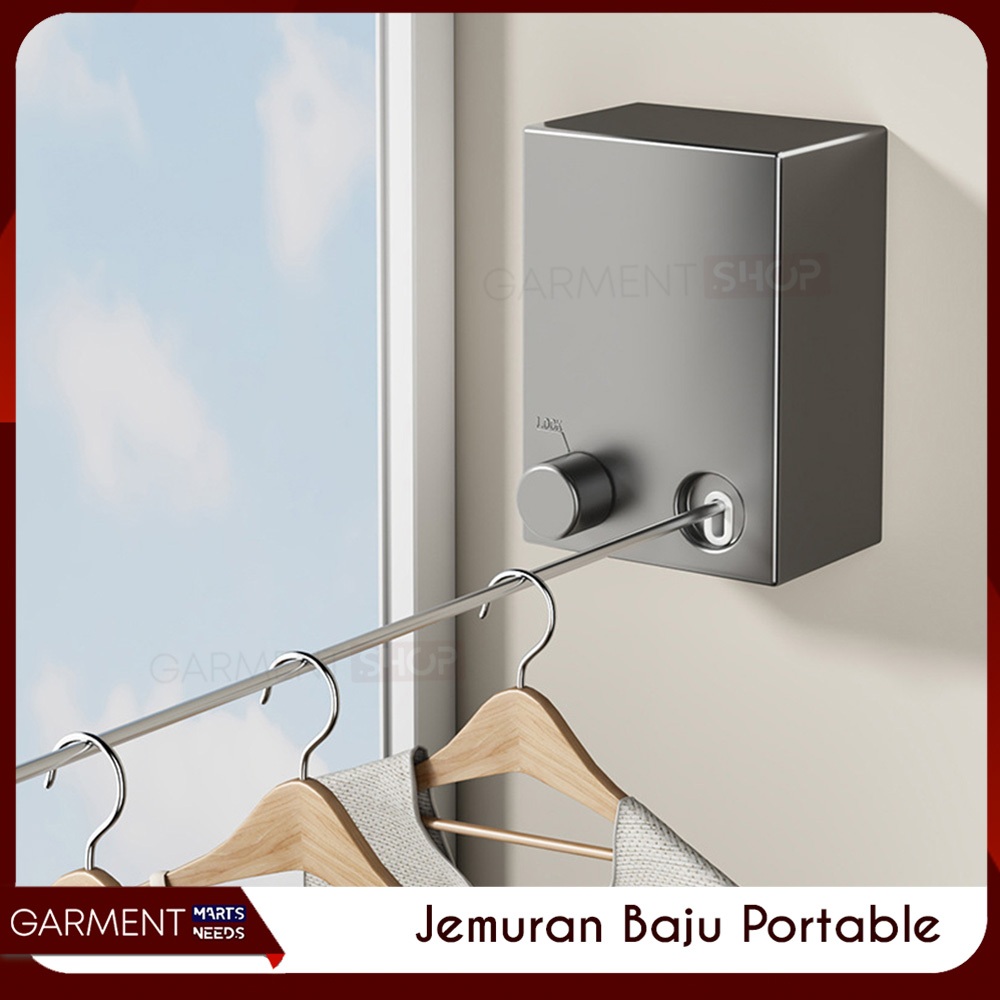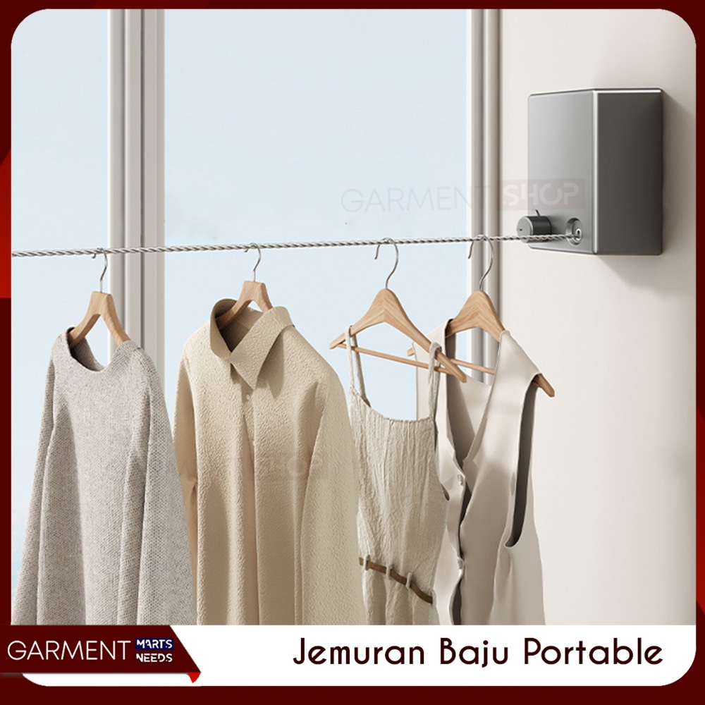 Jemuran Baju Portable Indoor Gantungan Tali Kawat Baja Stainless Steel Praktis Retractable Clothline