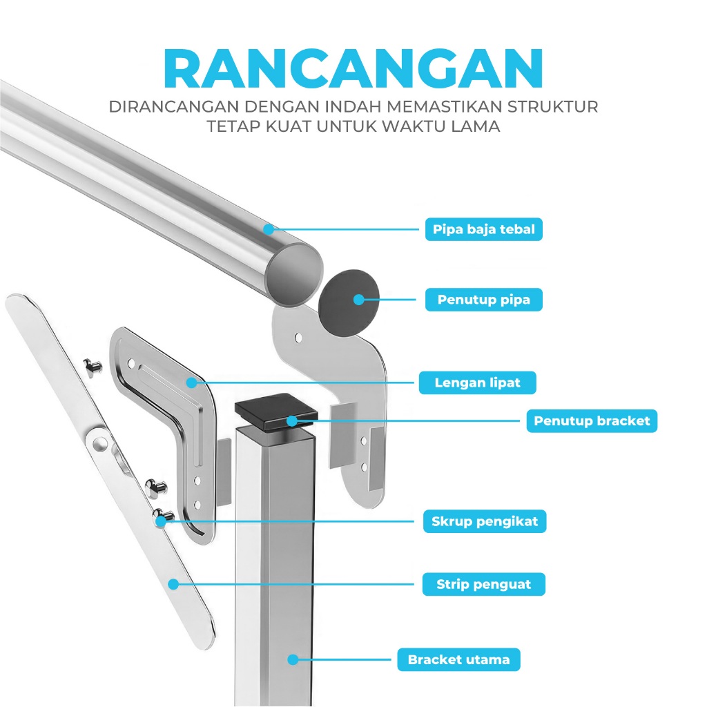 HOOKA Jemuran Baju Stainless Steel / Jemuran Baju Lipat / Gantungan Baju / Jemuran Portable