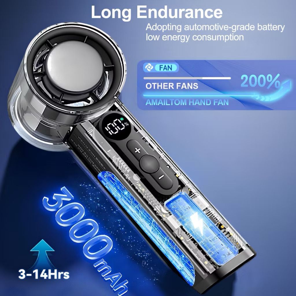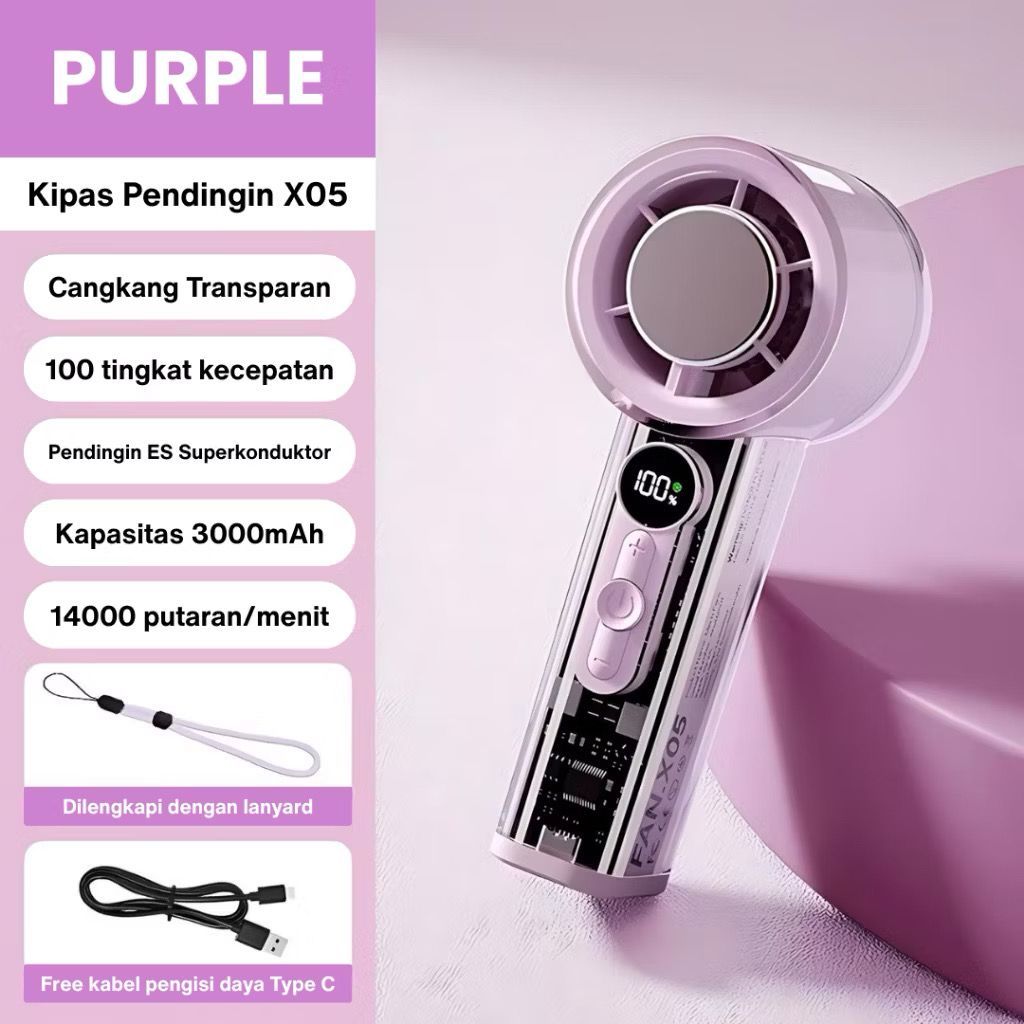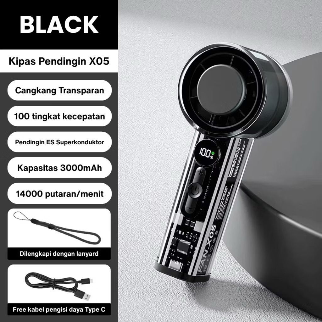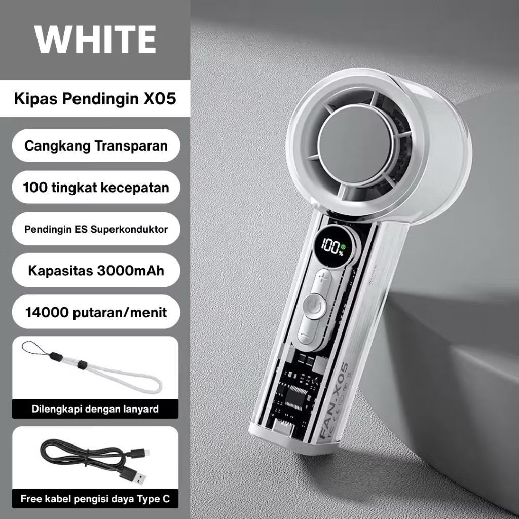 Kipas Portable AC 3000mah Semikonduktor Turbo Genggam Fan Pendingin 30000Rpm Tampilan Digital Led X05