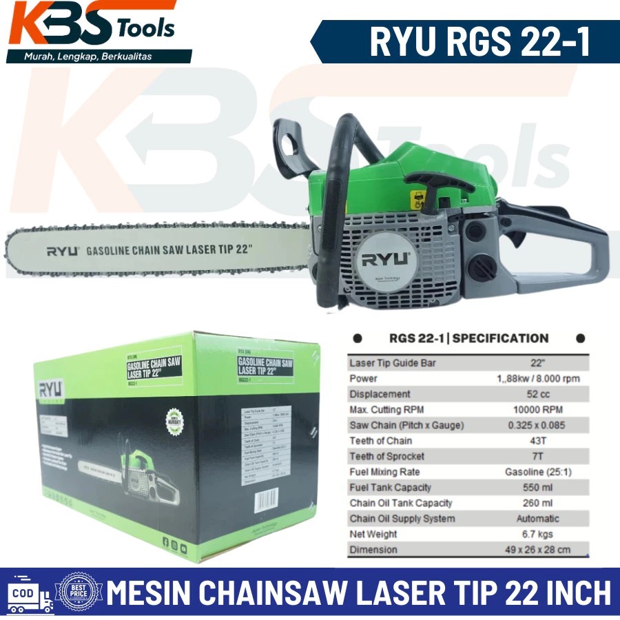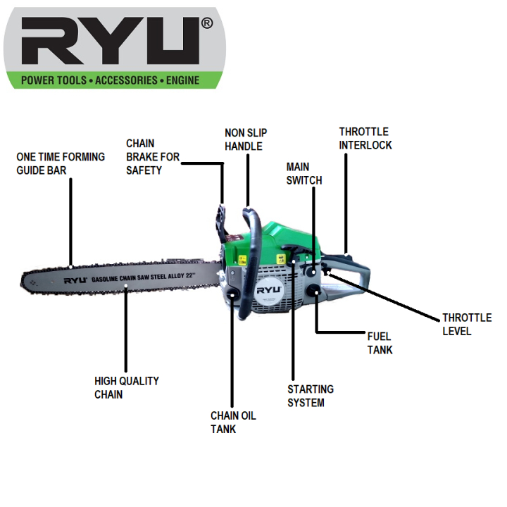 RYU Mesin Chainsaw Gergaji Kayu Pohon 2 Tak 22" Bar - PORTABLE REFFIloline Chain Saw RGS 22