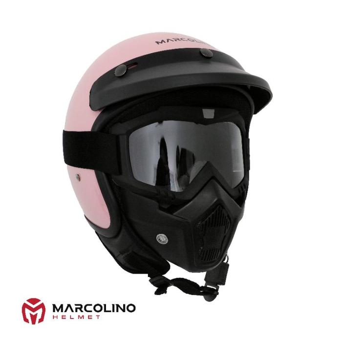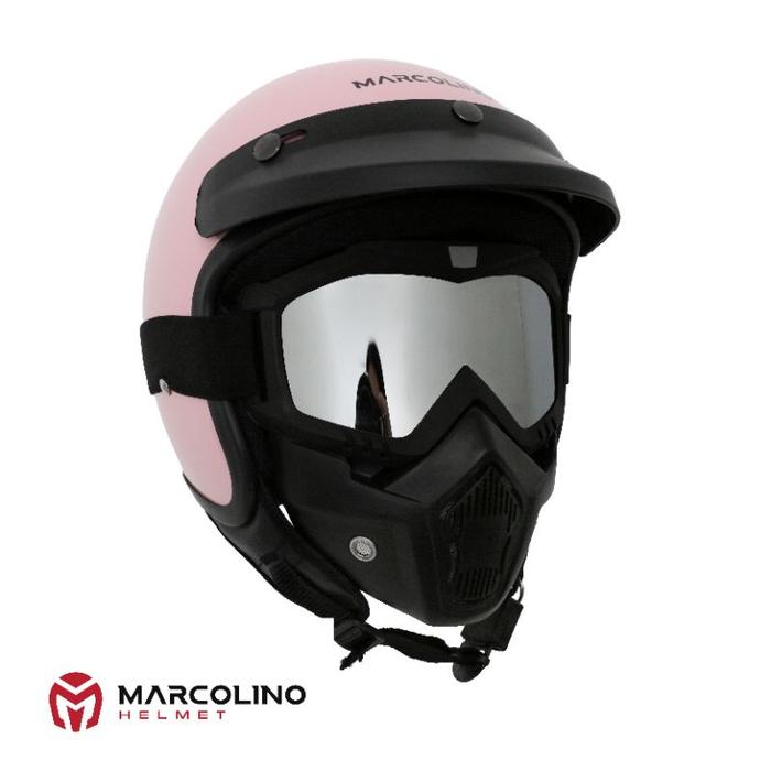 HELM BOGO RETRO MARCOLINO PINK GLOSSY SNI RETRO MASK BY JMC HELMET - SMOKE, S
