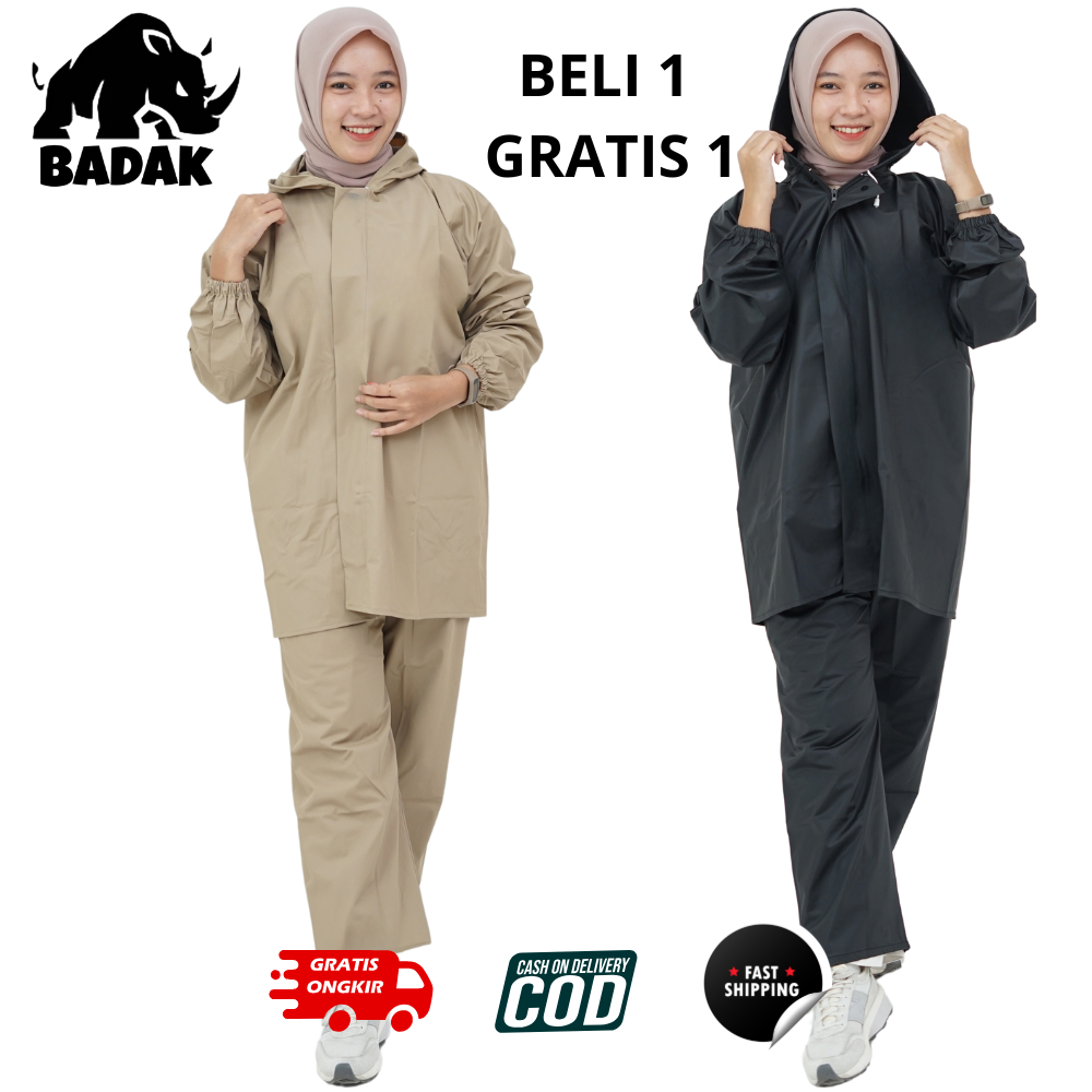 [Paket Hemat] Jas Hujan Raincoat Setelan Pria Wanita Dewasa Berkualitas Tebal PVC Premium Merk Badak