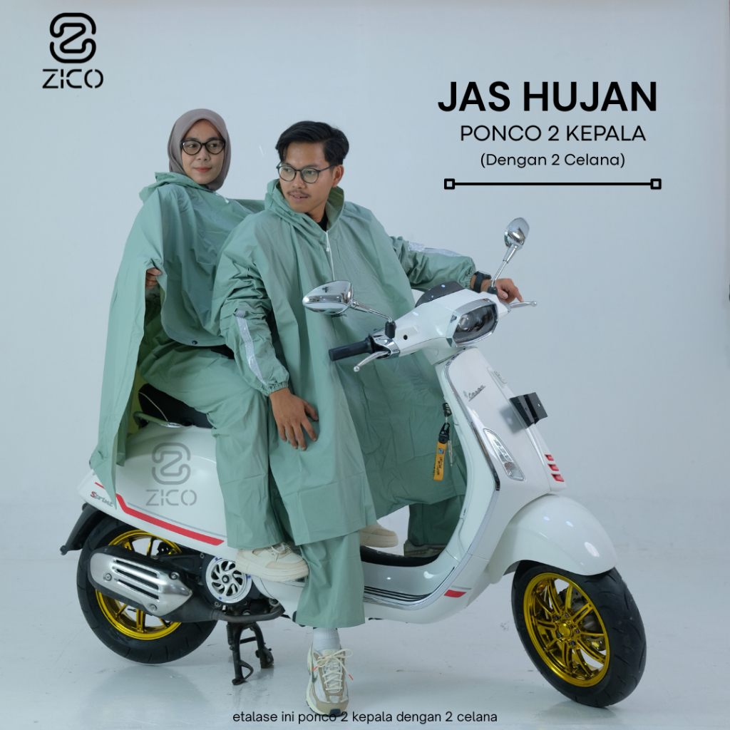 Jas Hujan Ponco Dua Kepala 2 Celana Jumbo Pria Wanita Dewasa Full Hot Press Tanpa Jahitan PVC ZICO
