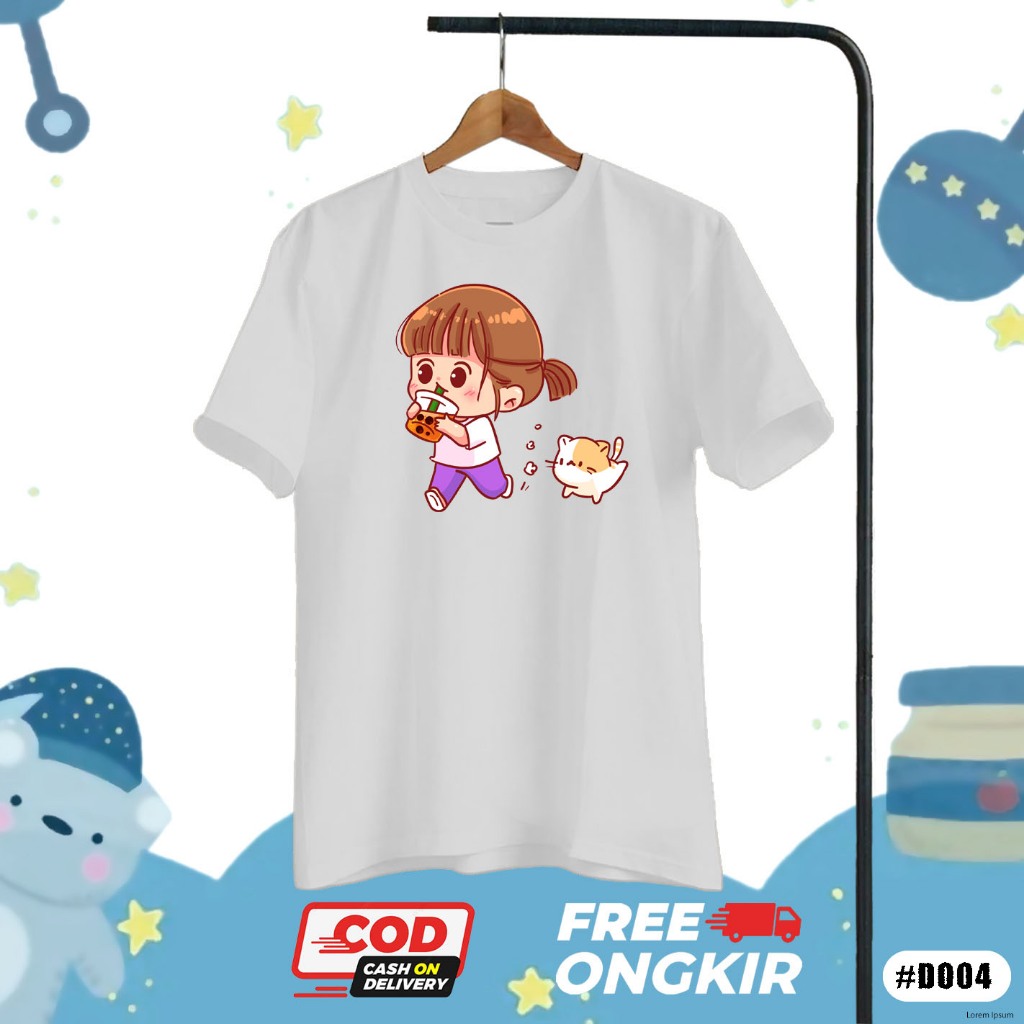 KAOS ANAK PEREMPUAN DISTRO LENGAN PENDEK CUTE GIRL UKURAN JUMBO USIA 7-13 TAHUN #D003 D004