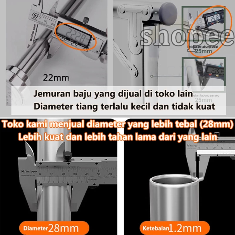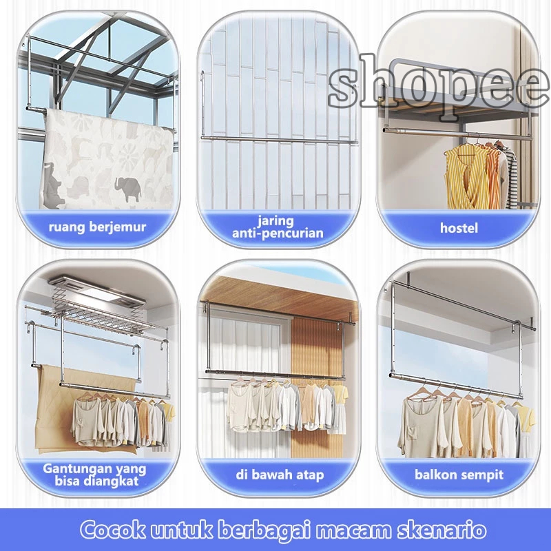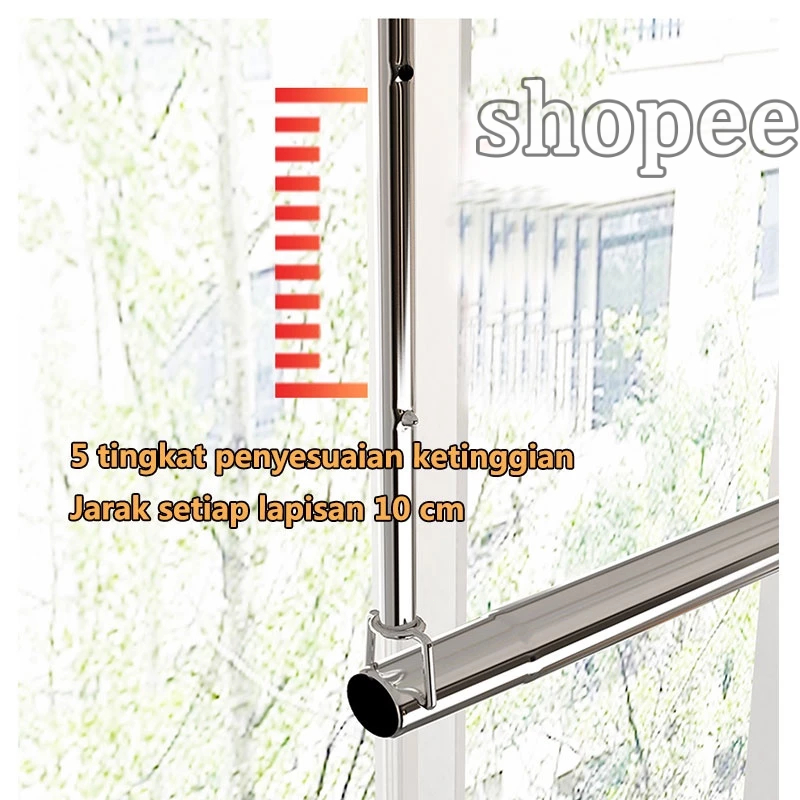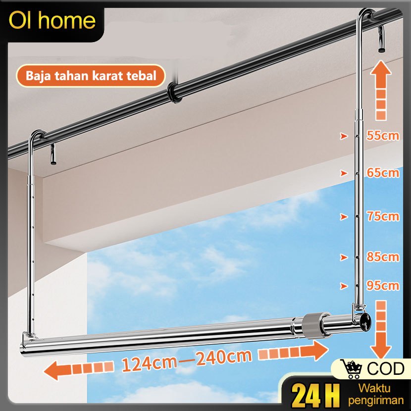 Olhome Jemuran Portable Lipat Dinding Stainless Steel Balkon Kanopi Tiang Jemuran Dapat Diangkat