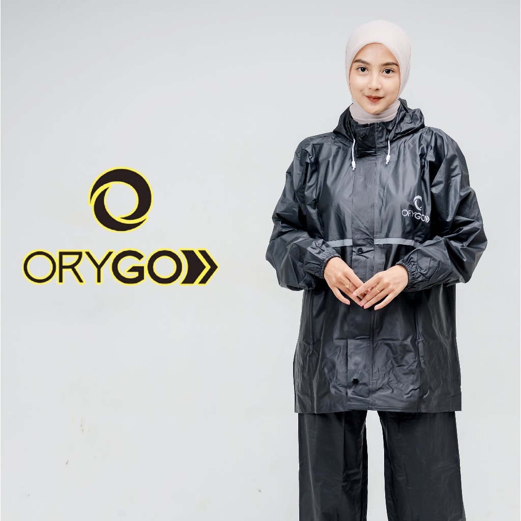 ORYGO RAINCOAT - Jas Hujan/Mantel Set Hoodie Pria Wanita Bahan Tebal Anti Rembes Fullpress Sealer