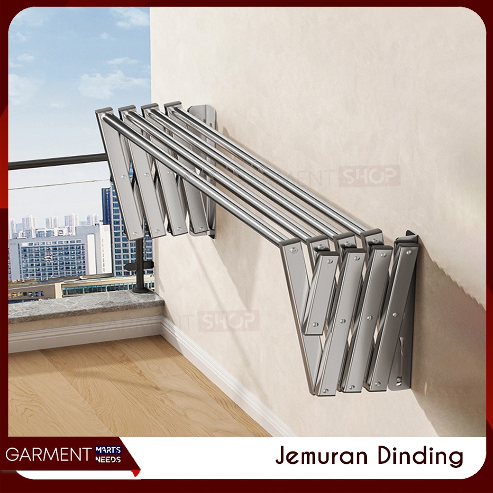 JEMDING - Jemuran Baju Dinding Tarik Lipat Rak Jemuran Pakaian Bedcover Multilayer Stainless Steel Anti Karat Minimalis