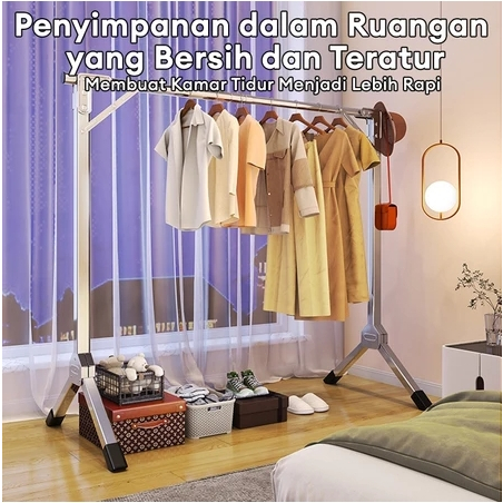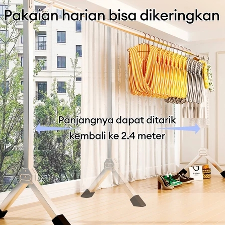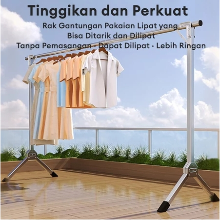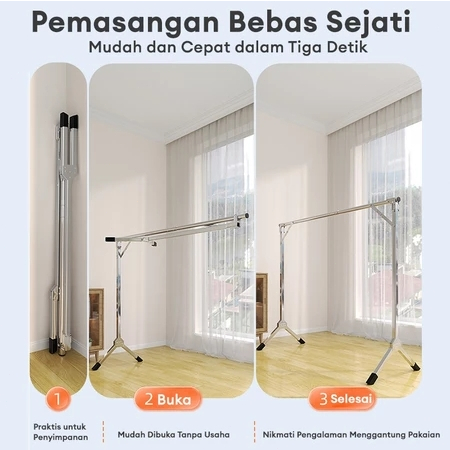 Jemuran Baju Stainless Steel 【Tidak Diperlukan Instalas】Jemuran Pakaian Lipat Jemuran Portable 240cm