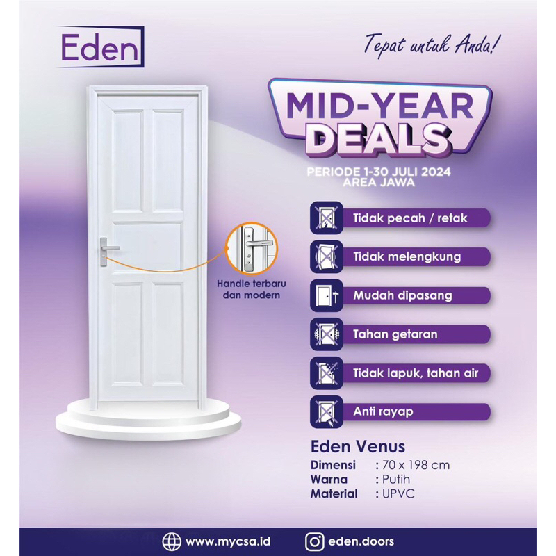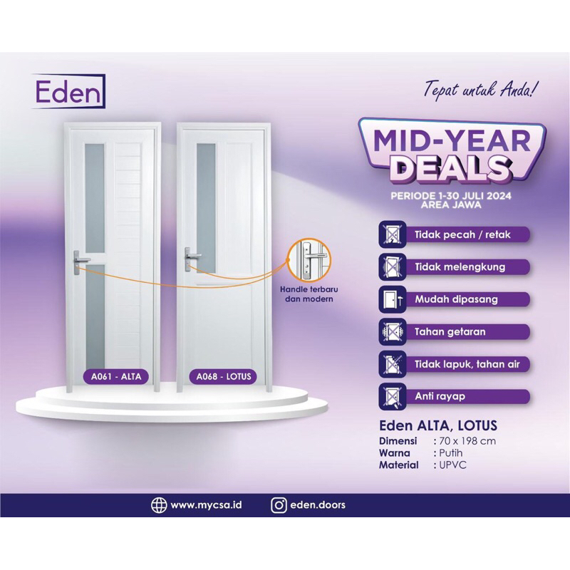 Pintu Kamar Mandi UPVC Premium Bahan Tebal Merk EDEN ( Wajib Tambahan Packing Kayu )