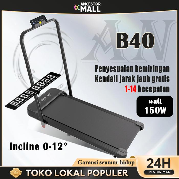 My-Hi Treadmill B40 Portable Treadmill Electric Low Watt Treadmill Elektrik Incline Walking Pad Running - B20Up-Hitam-In