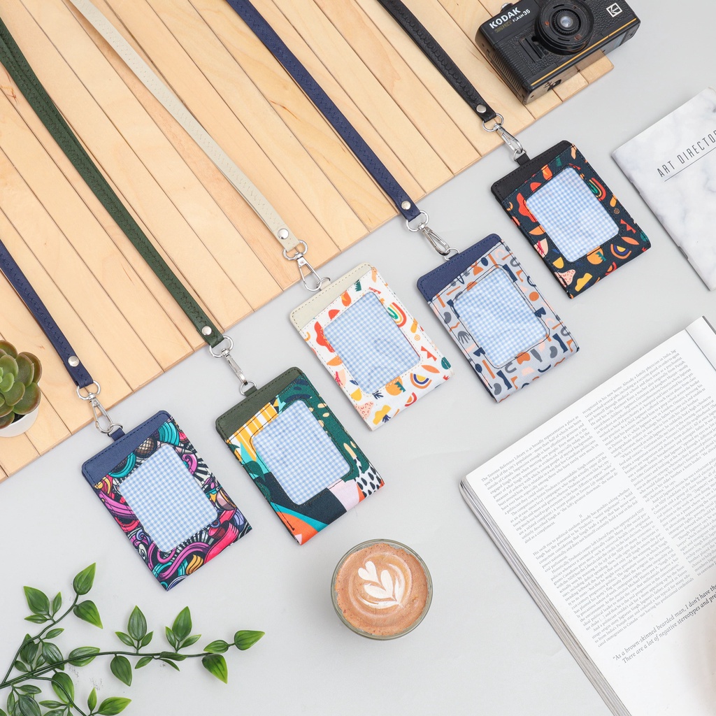 ID Card Holder Hanging Wallet Name Tag Lanyard Dompet Kartu Kalung Gantung Leher Wanita Pria Motif