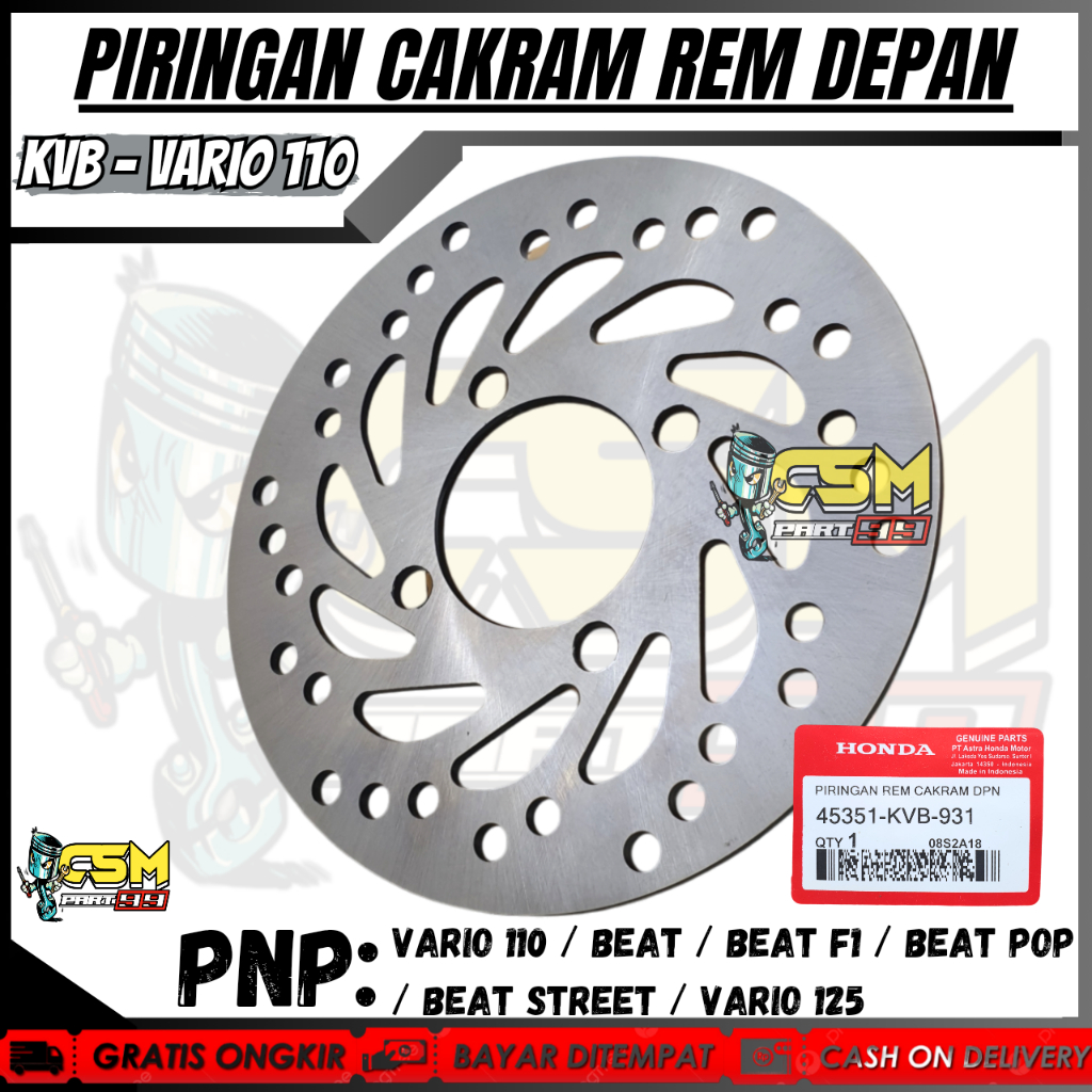 PAKET 3ITEM PIRINGAN CAKRAM DEPAN VARIO 11O + KAMPAS REM DEPAN + BELAKANG BEAT, BEAT F1, BEAT POP, VARIO 125,150 SCOOPY