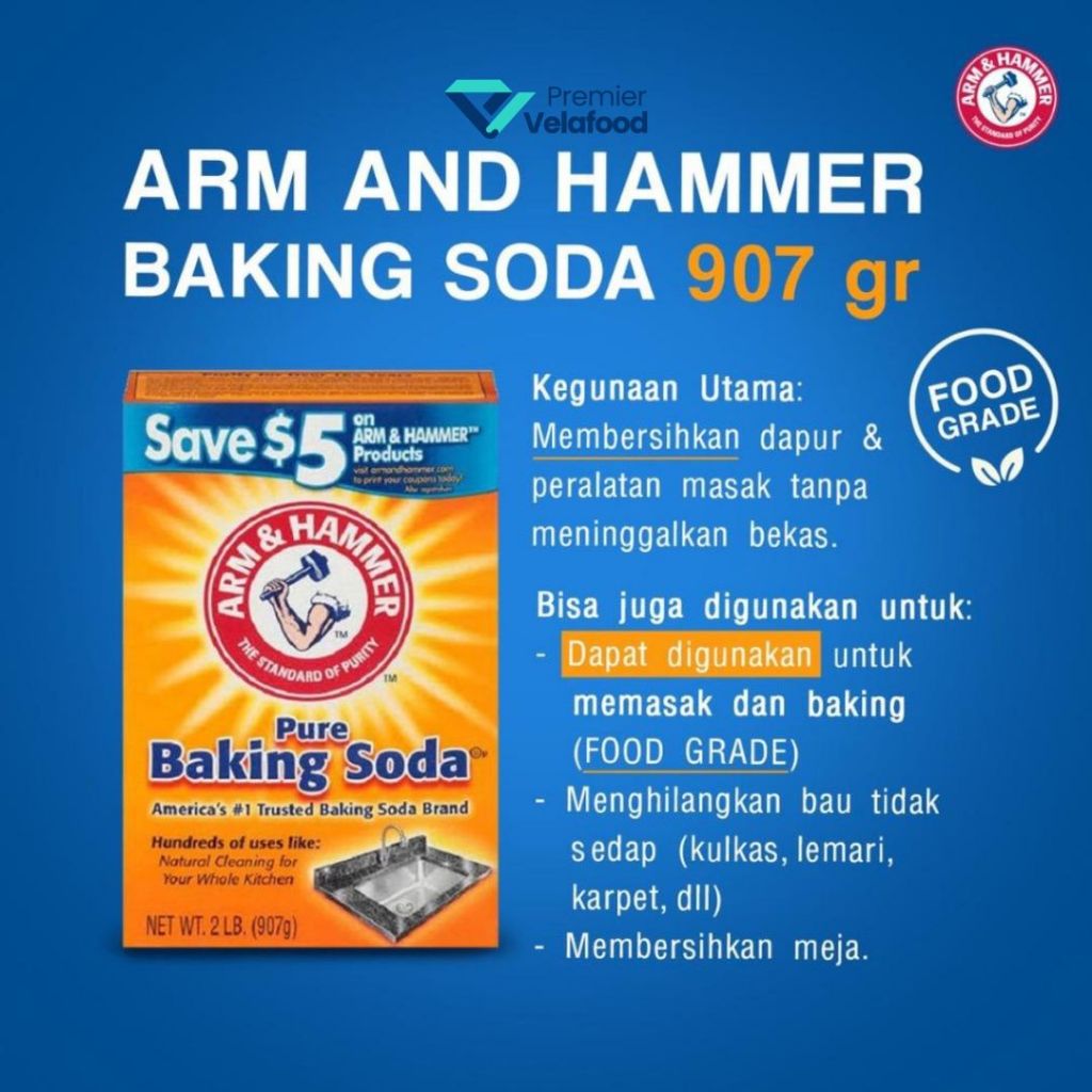 [HALAL] BAKING SODA ASLI USA MERK ARM & HAMMER 454gr