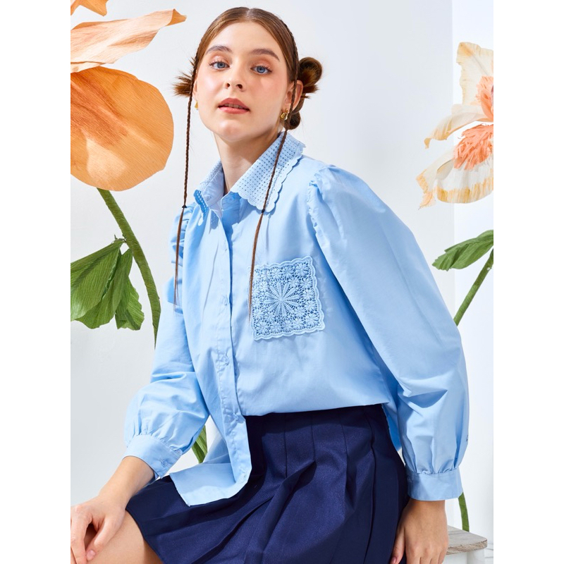 [ Senchi ] - Resu Lace Shirt / Atasan Kemeja Wanita Renda / Kemeja Wanita Style Jepang Korea / Atasan Wanita Renda Lace