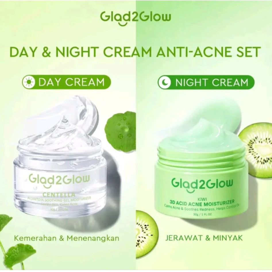 【Acne Set】Glad2Glow bundle Skincare Paket - Moisturizer + Serum Centella Moisturizer + Centella Glad2Glow Kiwi 3D Acid A