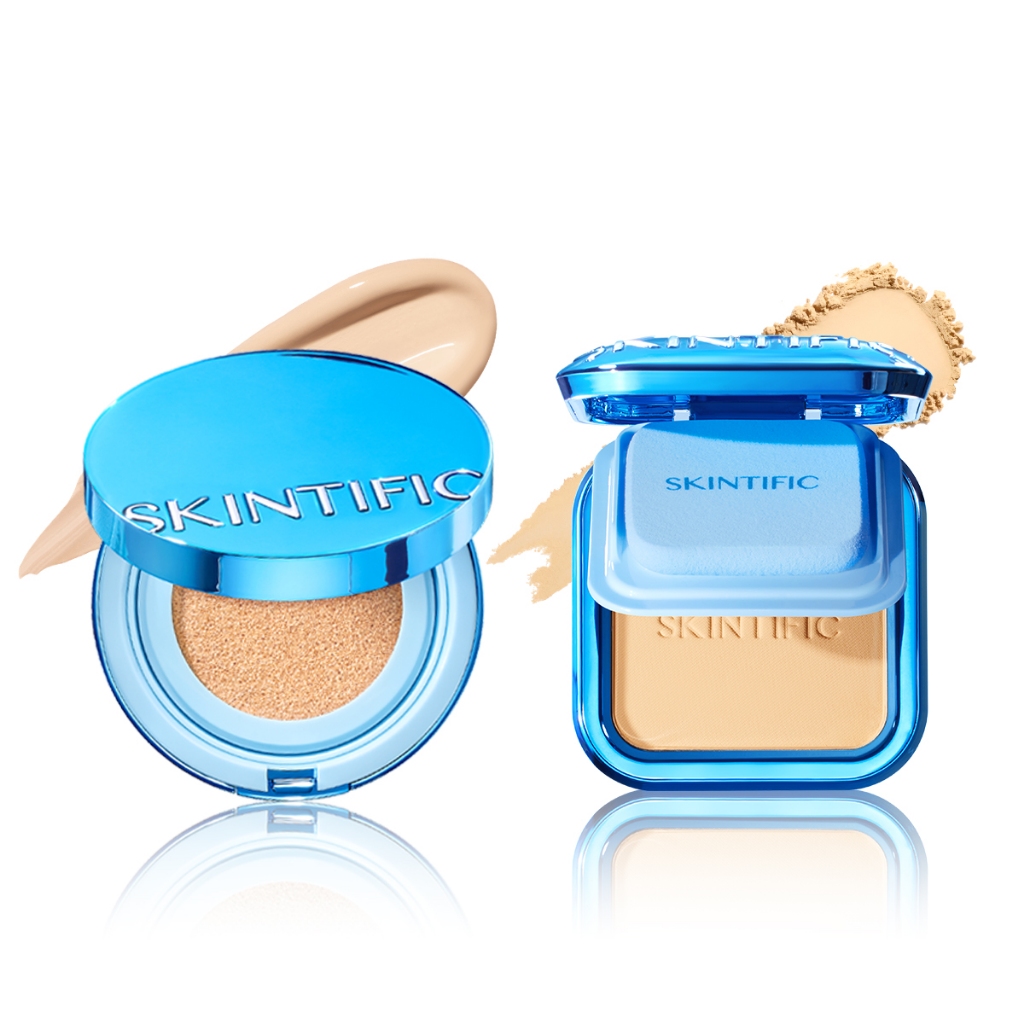 SKINTIFIC -2pcs Paket Makeup 2in1 Set | Perfect Stay Velvet Matte Cushion 11ml + Ultra Cover Powder Foundation 9g bedak