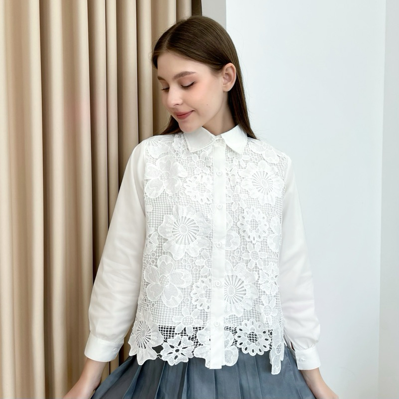 [ Senchi ] - Sumiko Brocade Lace Shirt / Atasan Kemeja Brokat Brukat / Atasan Kemeja Renda Wanita / Kemeja Katun Kombina