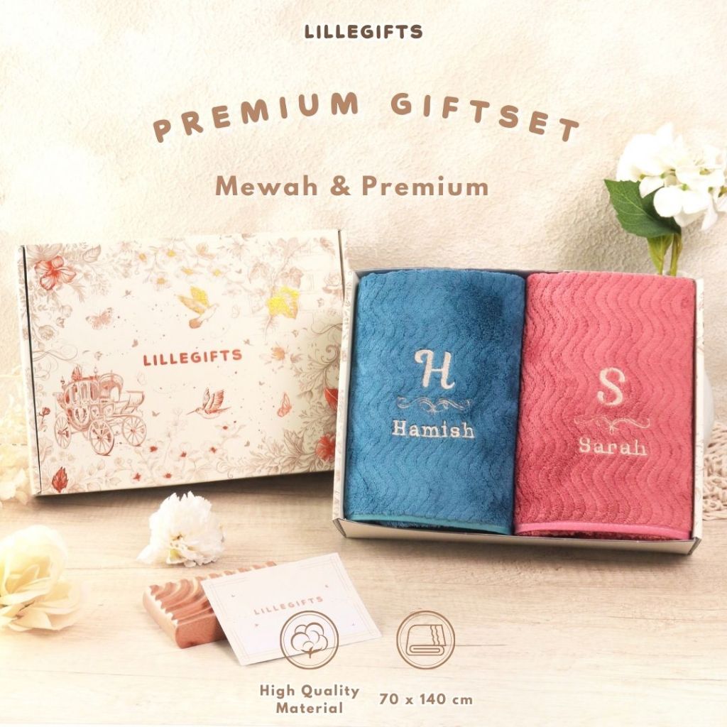 LILLEGIFTS Hampers Handuk Pasangan Bordir Couple Gift Wedding Kado Pernikahan Nikahan Nikah Ultah
