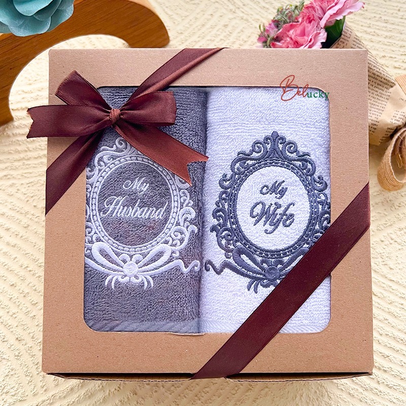 Handuk Couple Seserahan Hampers Ready Bordir Pasangan Gift Set Box Kado Pernikahan Wedding Gift + Box + Kartu ucapan Buk