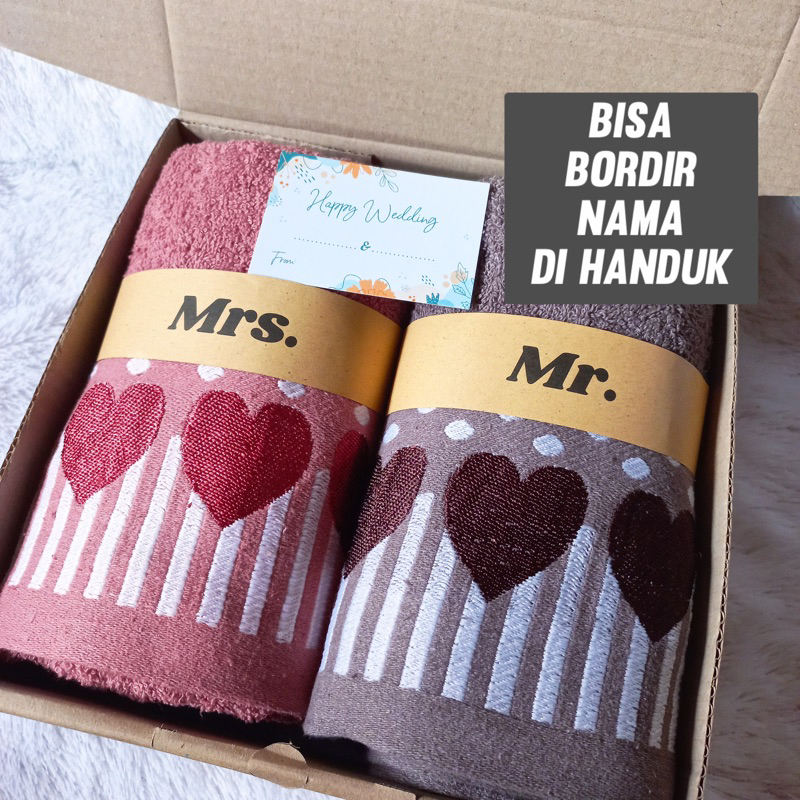 Hampers pernikahan handuk couple jumbo Bisa BORDIR NAMA , hampers kado wedding anniversary ulang tahun dll