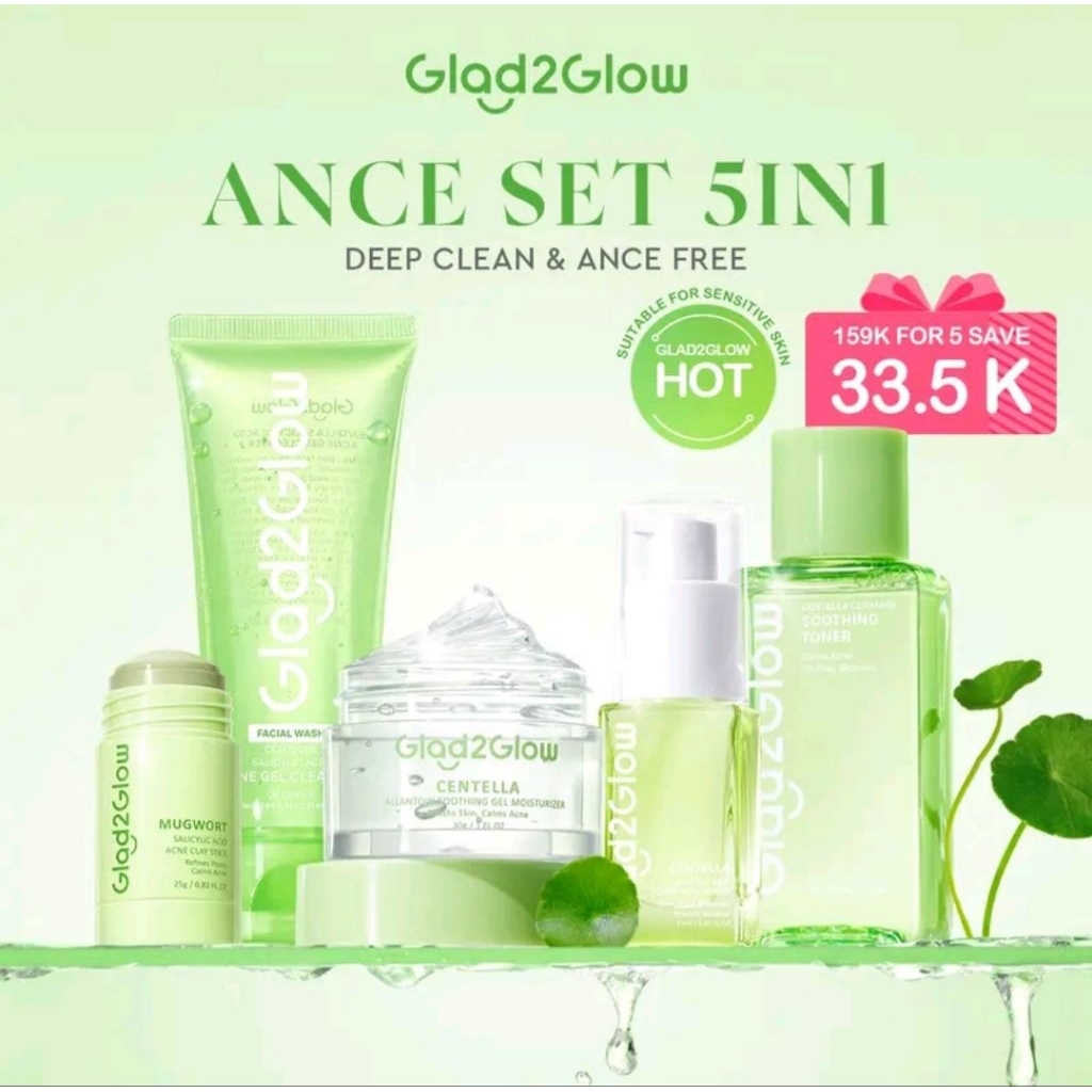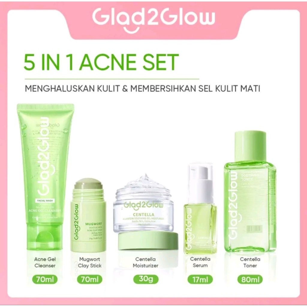 [Toko Resmi] GLAD2GLOW Paket 5in1 Acne Care Bundle Moizturizer + Centella Acne Gel Cleanser + serum acne +toner+acne sti