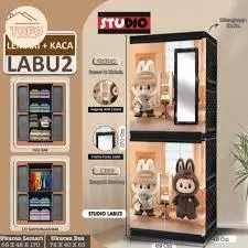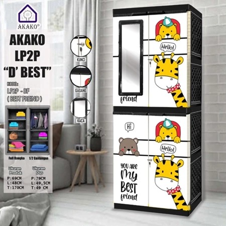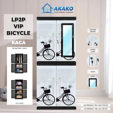 Lemari - lemari pakaian - rak baju - Lemari Pakaian Plastik Akako Tiptop JUMBO 2 Pintu Motif Gantung Rak Kaca Kunci Prin