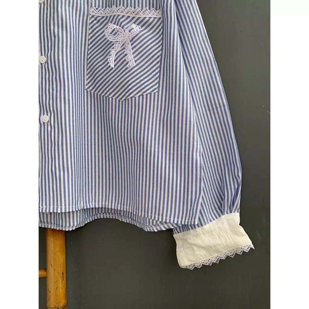 Lulu Stripe Blouse Katun Garis-Garis Kombinasi Renda