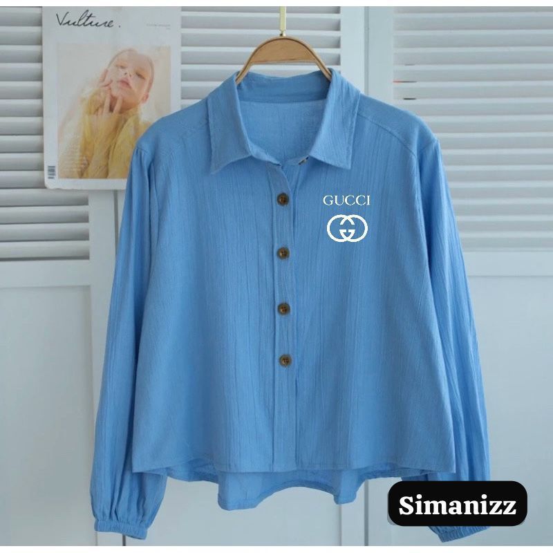Blouse Wanita Crop Leher V Lengan Karet Logo Samping Kekinian / Kemeja Wanita V Korean Style / Baju Wanita Crop Lengan K