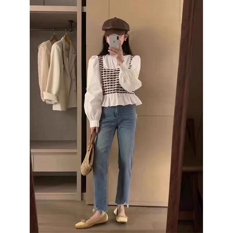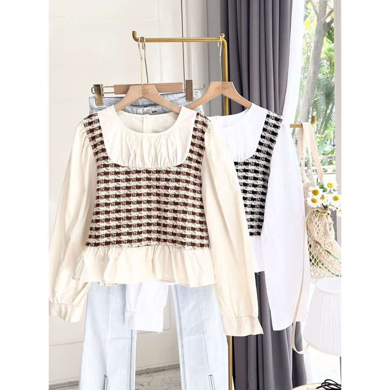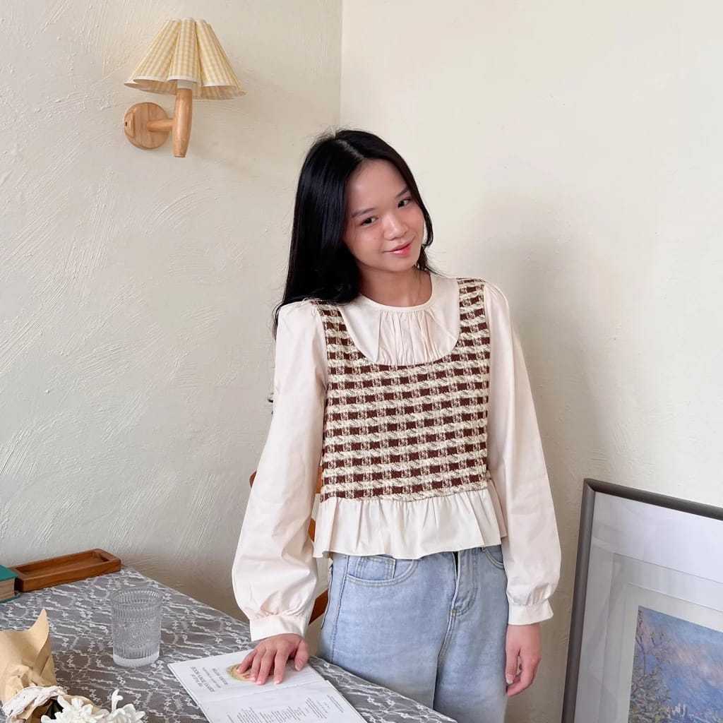 Ahreum Blouse Katun Twist Combi Knit Girly Style