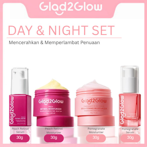 Glad2Glow Pomegranate Niacinamide Power Bright White Serum Wajah 17ml Peach Retinol Moisturizer 30g