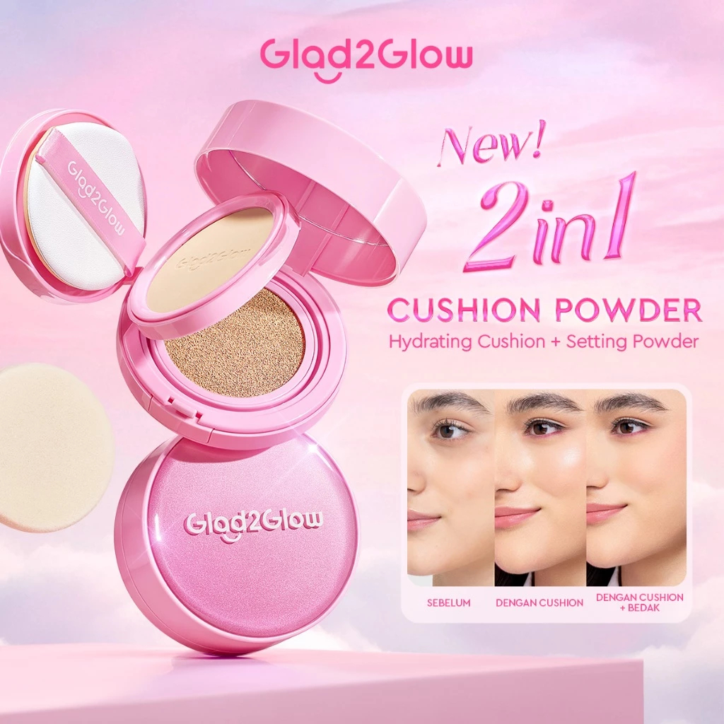 Glad2Glow 2in1 Perfect Pair Cushion Powder Foundation Waterproof Make Up Setting BB Cream Tahan Tahan 12Jam