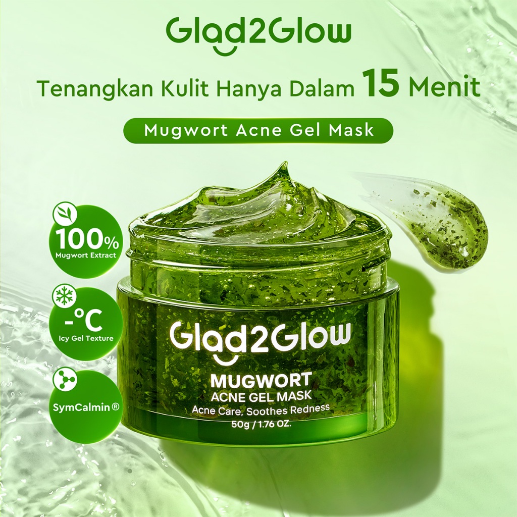 [New Launch]Glad2Glow Mugwort Acne Gel Mask 50g Masker Wajah Masker Komedo dan Pori Pori Wajah Masker Mask Sleeping Mask